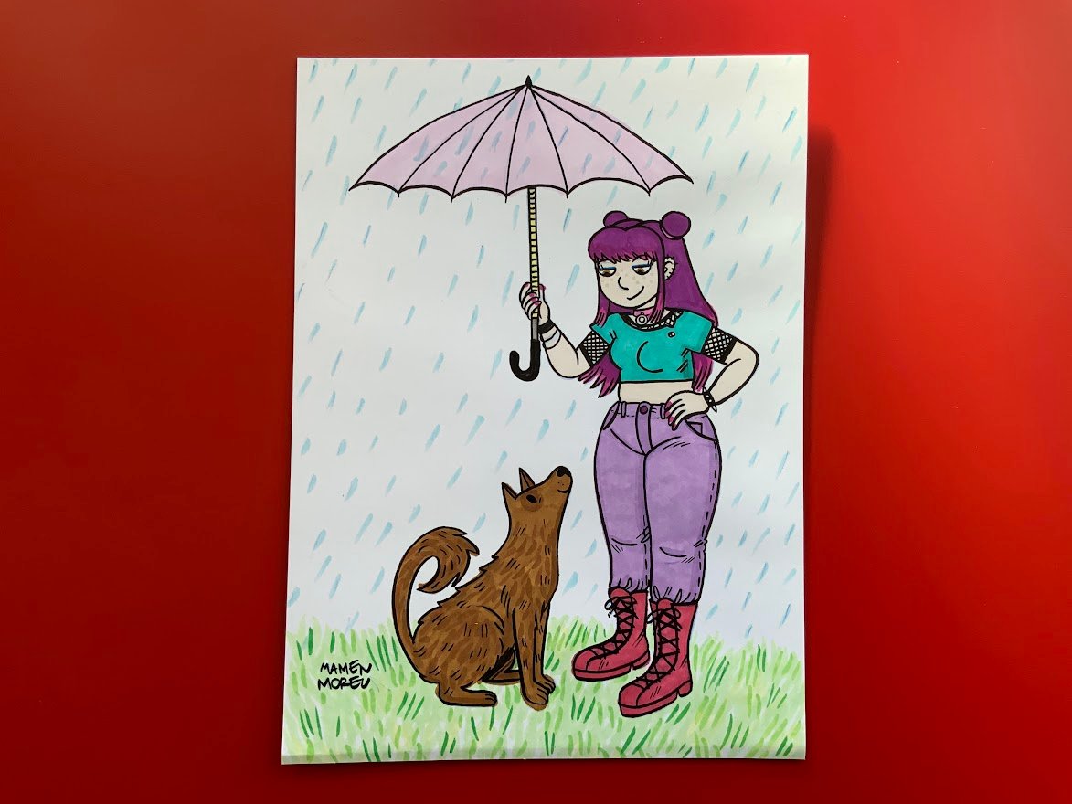 Ilustración chica y perro