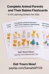 Complete Animal Parents and Their Babies Flashcards – 3 A4 Learning Sheets for Kids