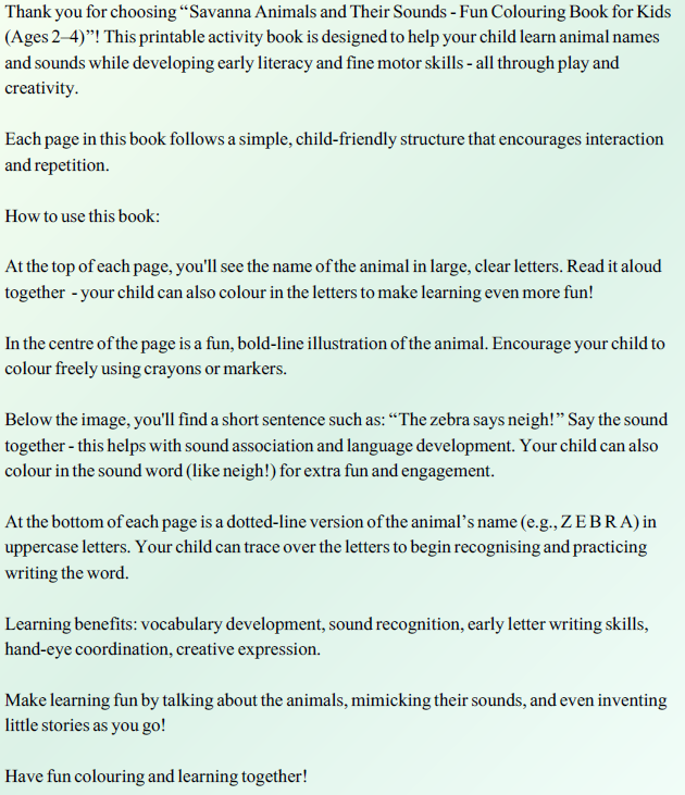 This printable activity book is designed to help your child learn animal names and sounds while developing early literacy and fine motor skills - all through play and creativity.