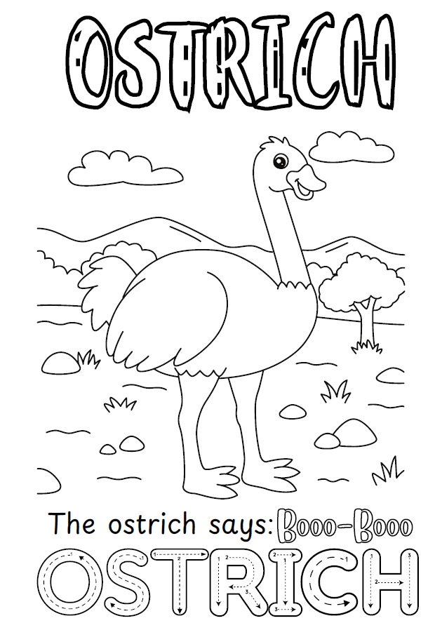 - In the centre of the page is a fun, bold-line illustration of the animal!