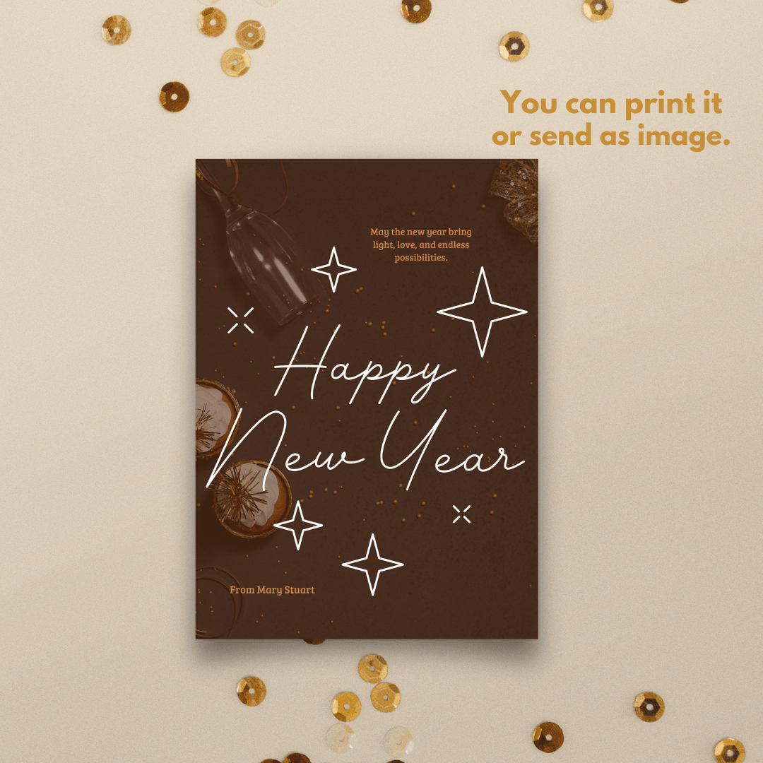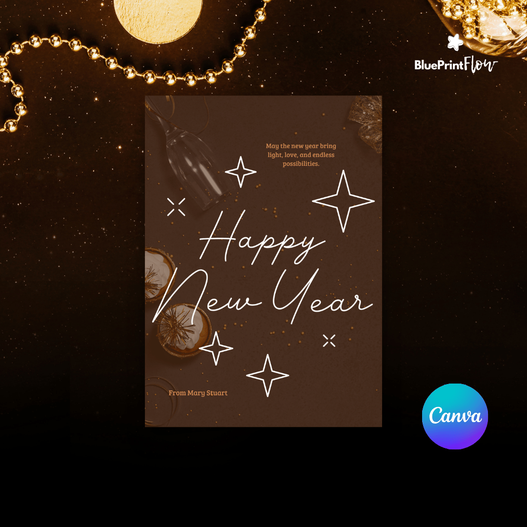 [FREE] Professional Sparkle New Year Card Canva Template Design