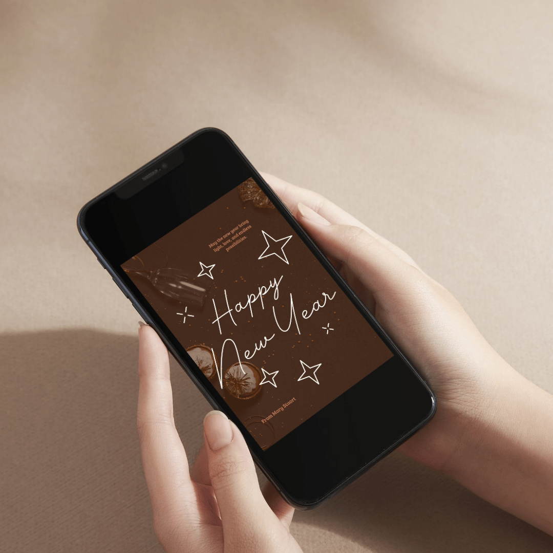 Designed with elegant gold accents and modern lettering, this template is perfect for sending heartfelt wishes to your coworkers, clients, and professional network. The rich brown background combined with festive details creates a warm and sophisticated tone.