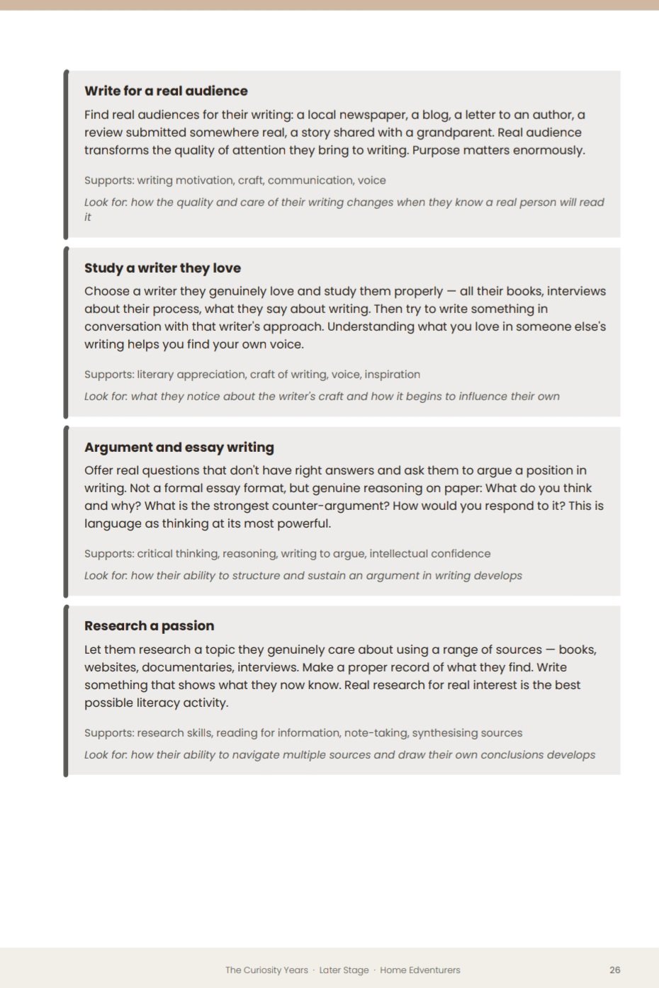 It is a framework for supporting older children in ways that honour both their growing maturity and their continued need for freedom, play, creativity, and exploration.