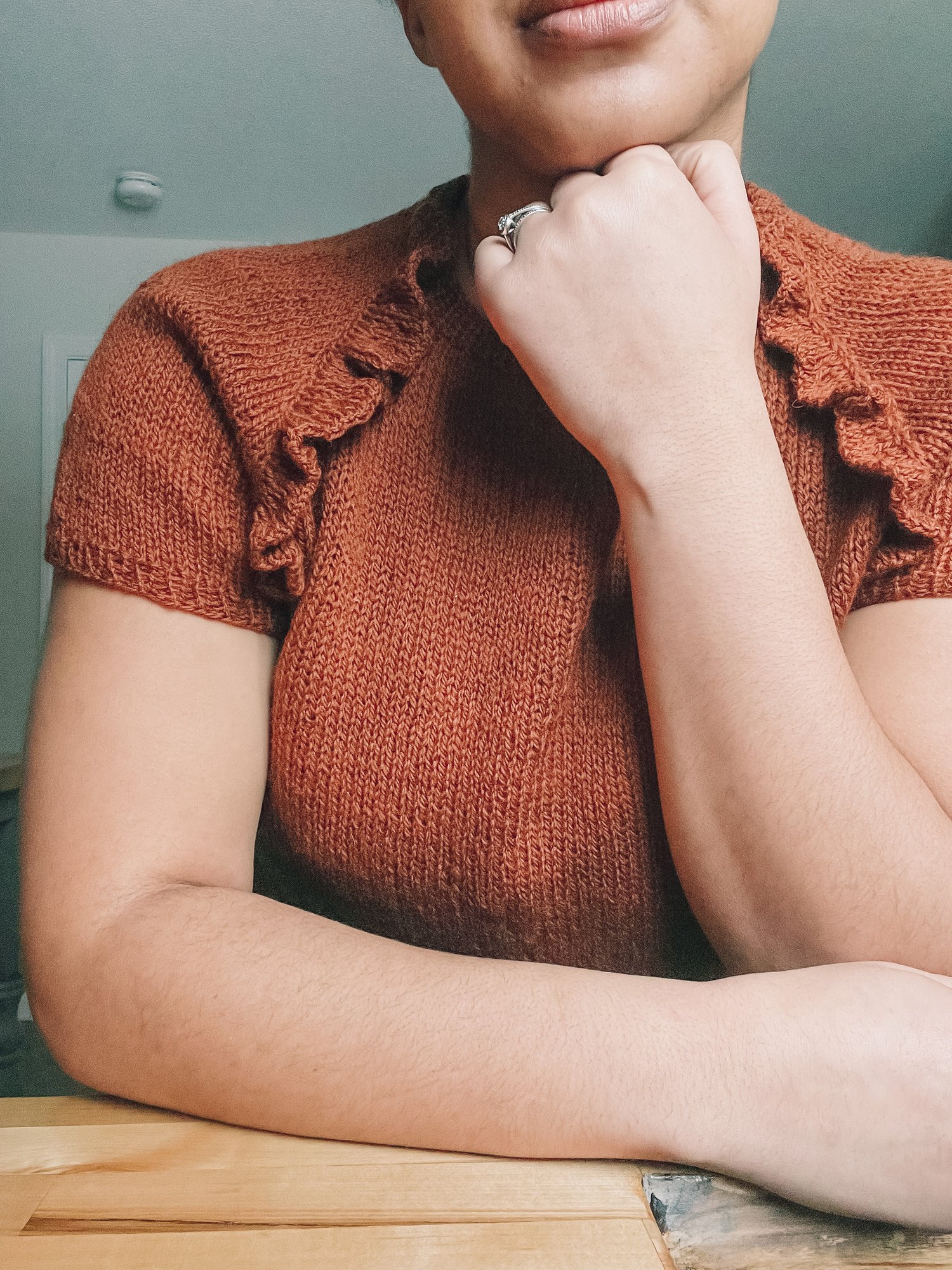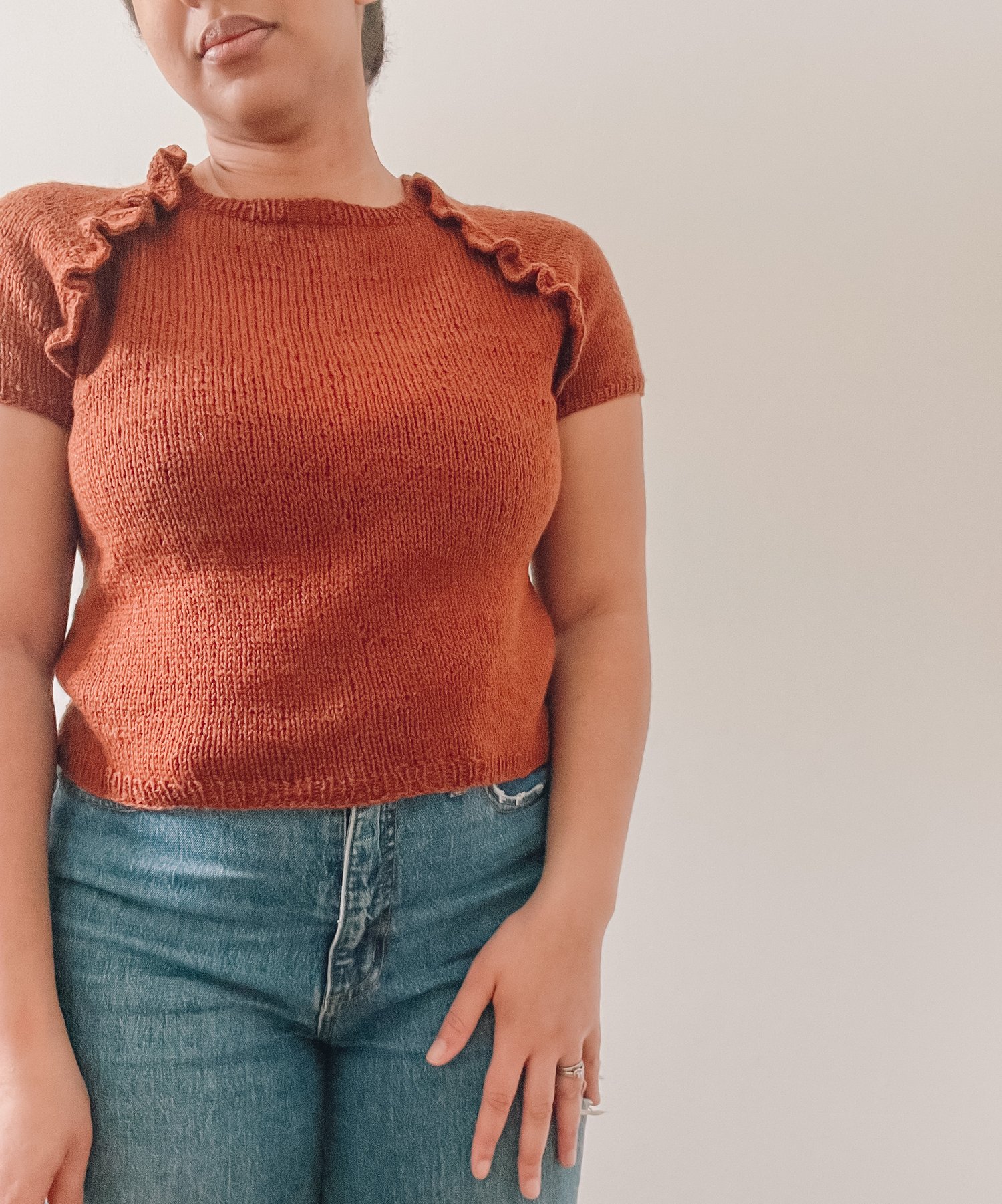 The Pretty Basic Ruffle Raglan says it all in its name: it's a basic top-down raglan construction finished off with ruffles along the raglan seams. Knit in a fingering weight yarn, this lightweight top sits just about high-hip level and is a lovely addition to your warm weather wardrobe.