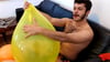 During 14 minutes Kerem a dominant sexy guy blow the bigger he can 3 balloons and clean the balloons room.