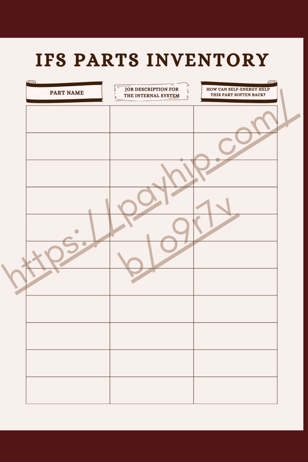 IFS Parts Inventory: Internal Family Systems Therapy Tracker
