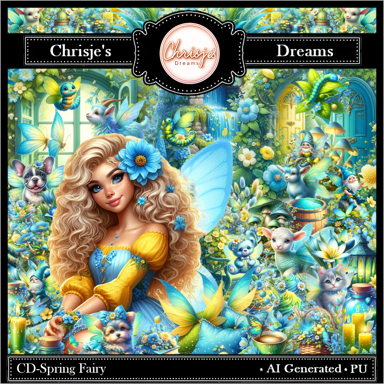 Spring Fairy is a🌷🧚♀️ spring/fairy🧚♀️🌷 themed kit which contains 128 elements, 8 Frames, 24 papers and 3 beautiful AI generated png tubes by Chrisje's Dreams.