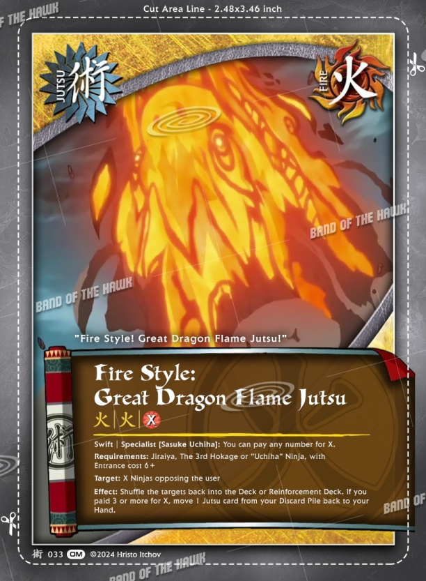 j033 - Fire Style Great Dragon Flame Jutsu Jutsu card from our Obito & Madara card set for Naruto CCG.