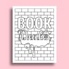 Keywords: book lover coloring page, bookish printable, reading quote art, book dealer sign, fun book coloring