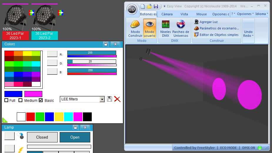 Esta Librería SSL2 está optimizada para trabajar con Magic 3d Easy View. Es decir para ver una representación 3D de las secuencias que estemos realizando con Freestyler, QLC+ o cualquier otro soft que se conecte con Magic 3d.