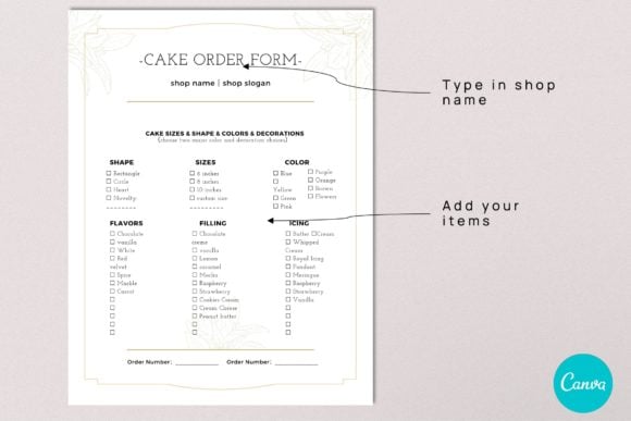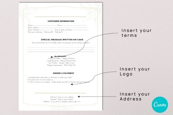 Editable Cake Order Form Template, Instant Download, Bakery Business, Dessert Menu, diy Canva Template, Minimalist, Start a Bakery, Home bakery