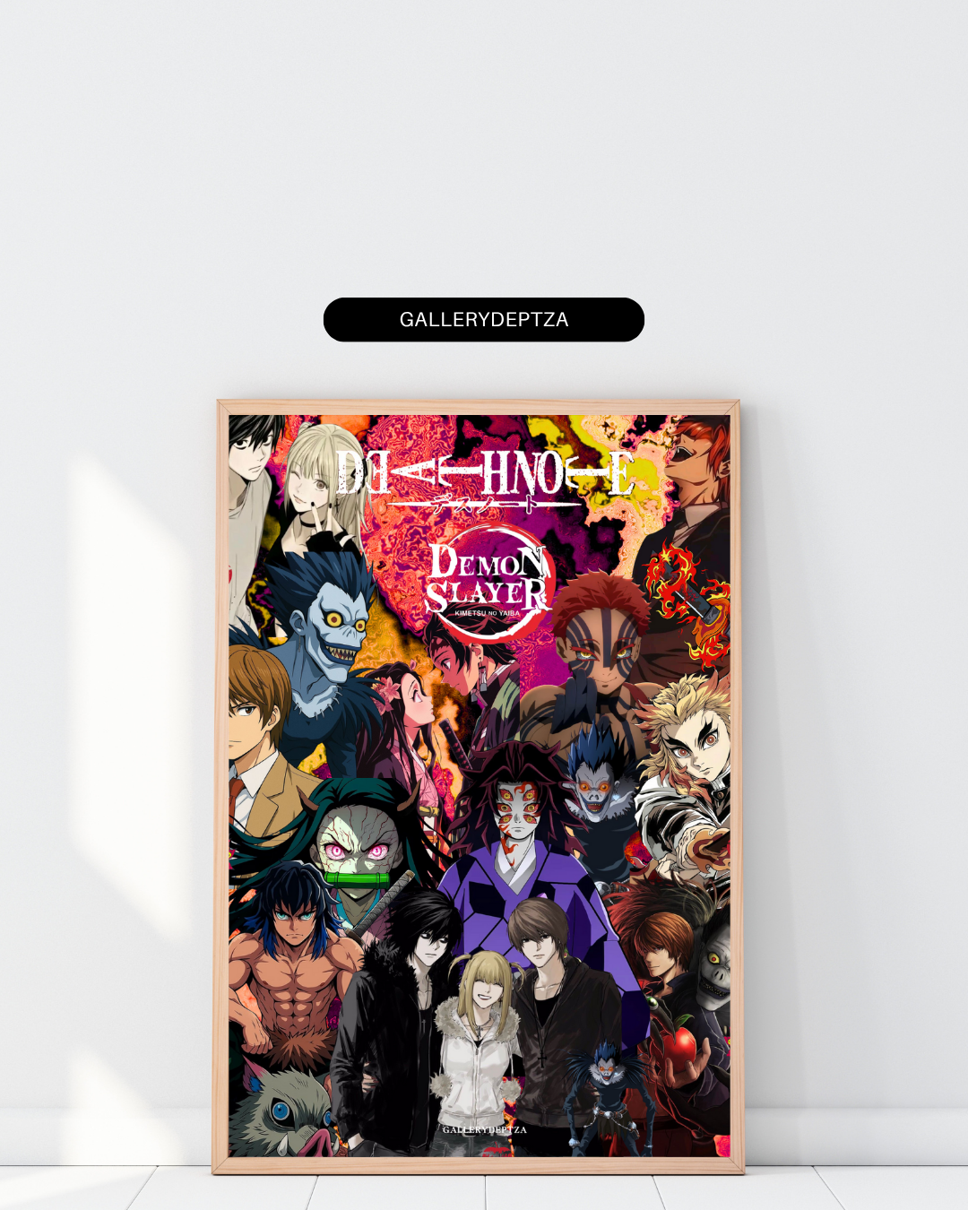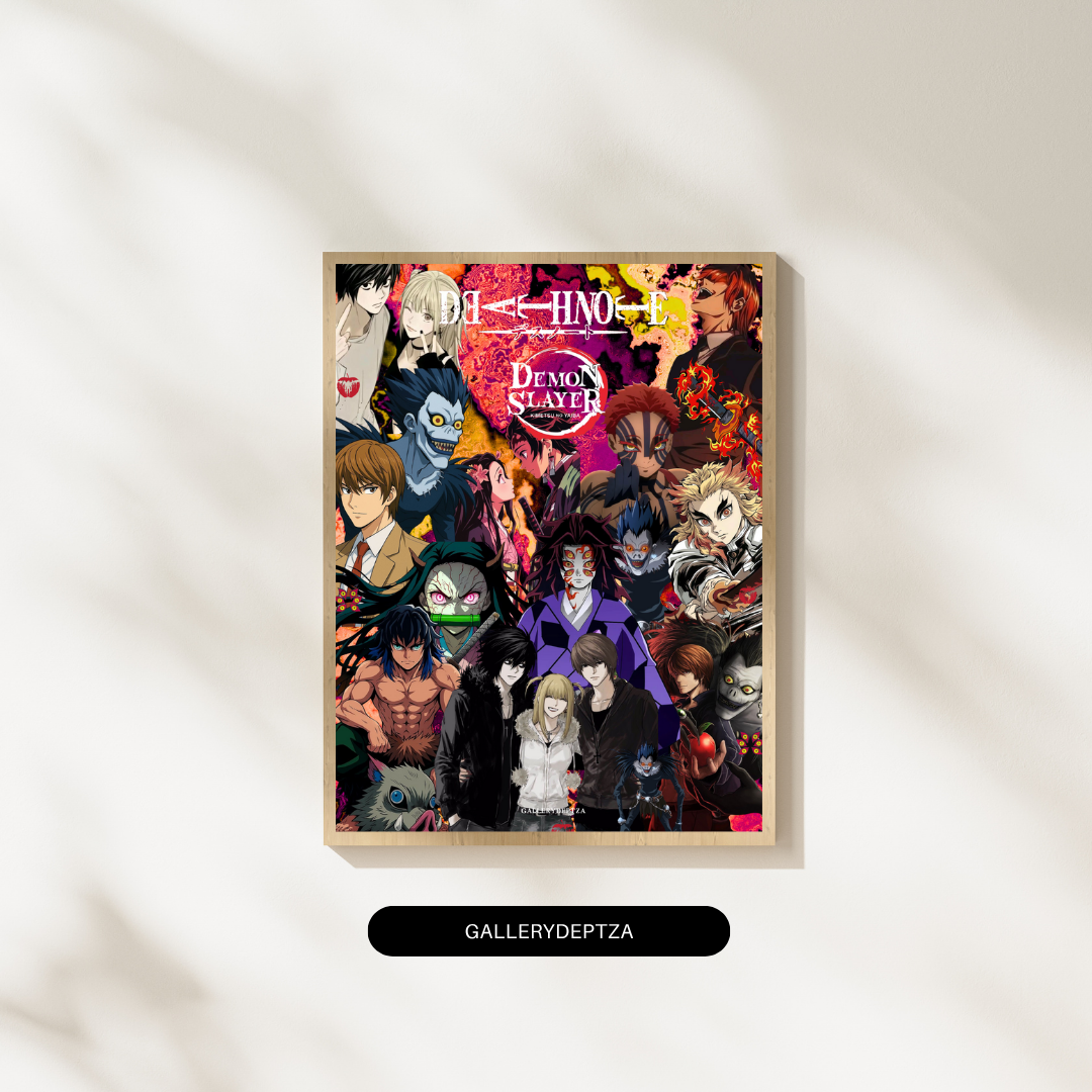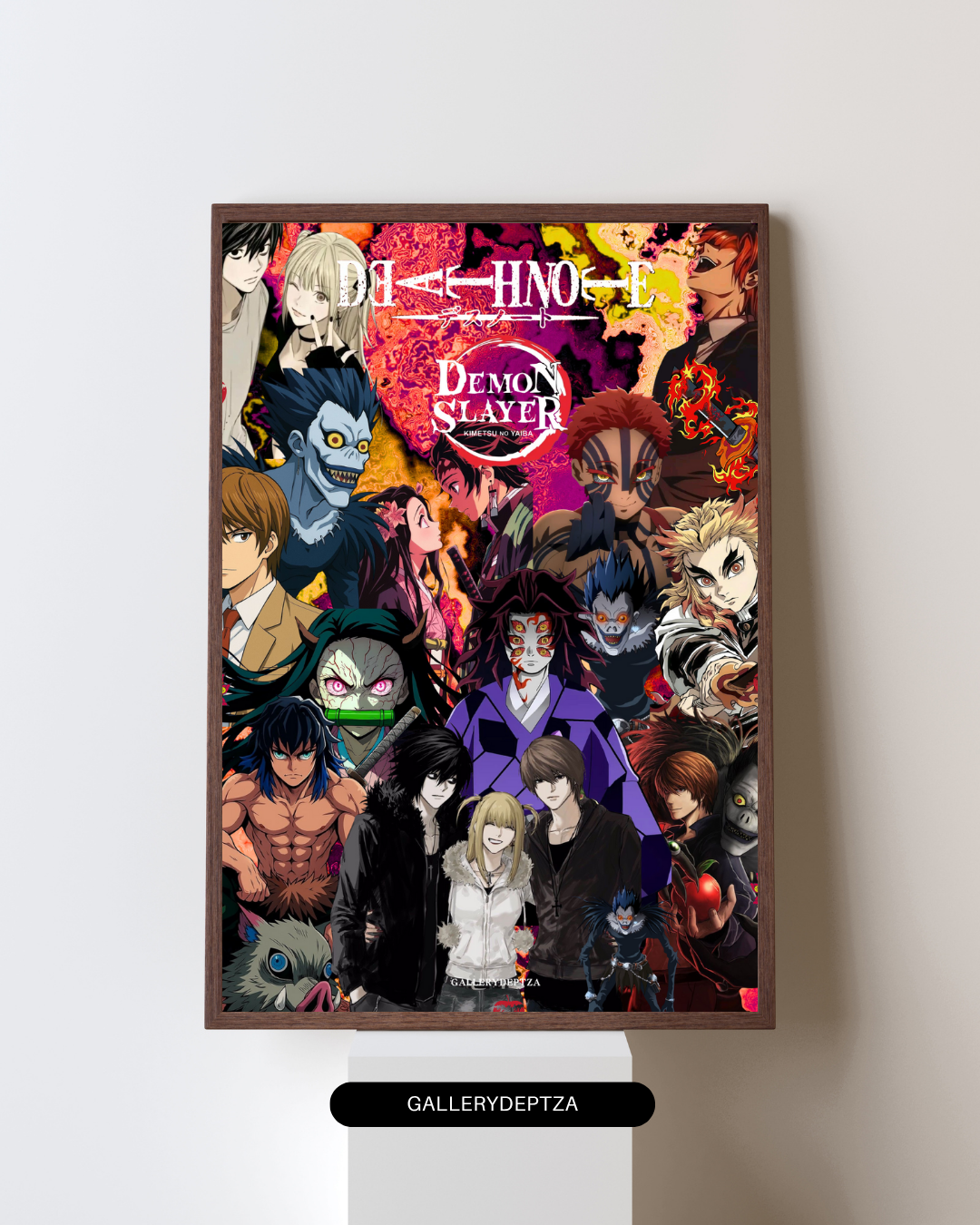 Transform your walls with this exclusive crossover piece — combining the suspense of Death Note with the action-packed world of Demon Slayer.