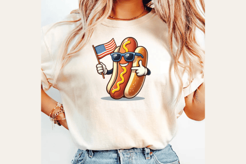 Hotdog 4th of July T-Shirt and Shirt Sublimation Design - Fun Patriotic Hotdog with American Flag Theme - Perfect for Memorial Day and 4th of July Celebrations - Instant Digital Download - 300 DPI PNG