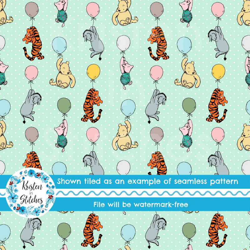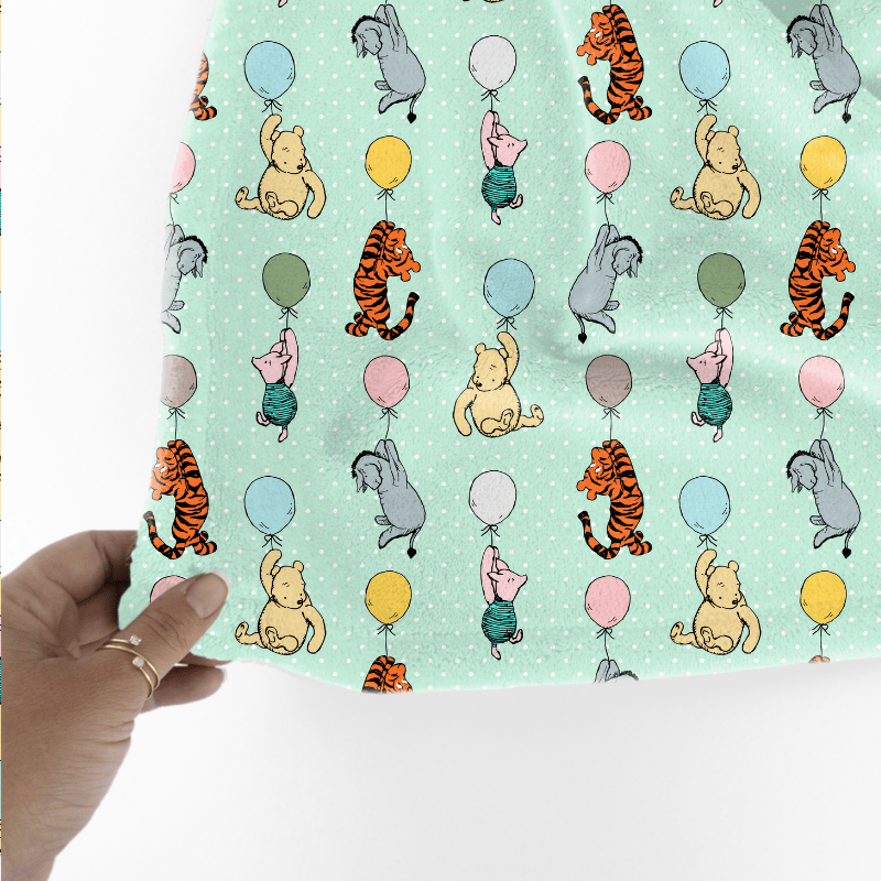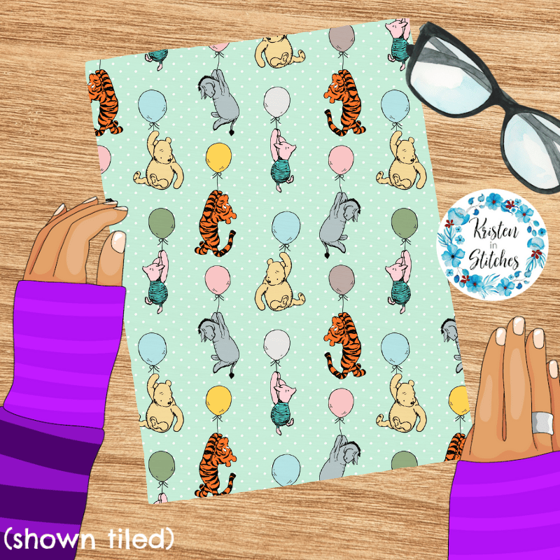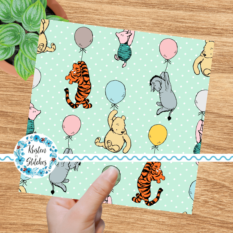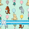 Classic Winnie the Pooh and Friends Floating Balloons Nursery Seamless Pattern, Mint