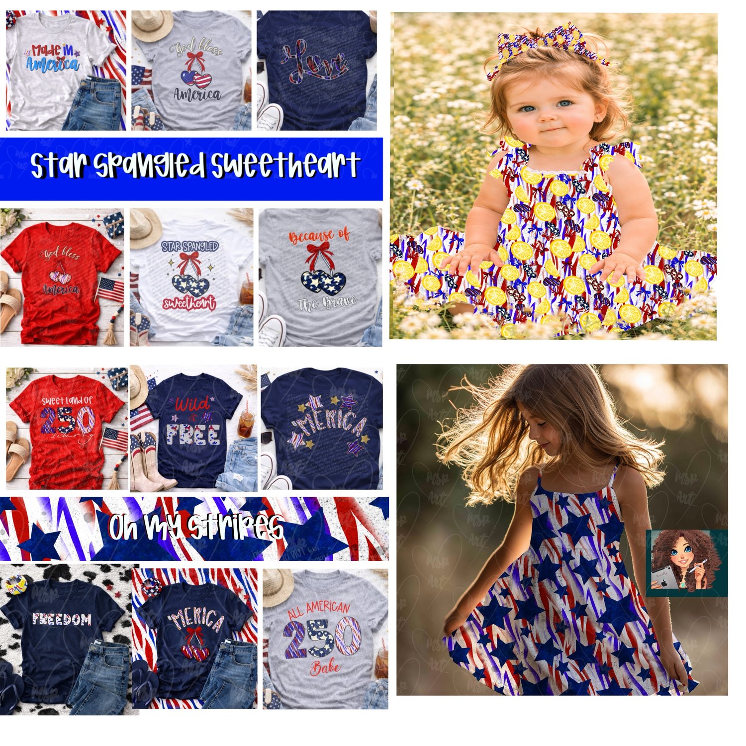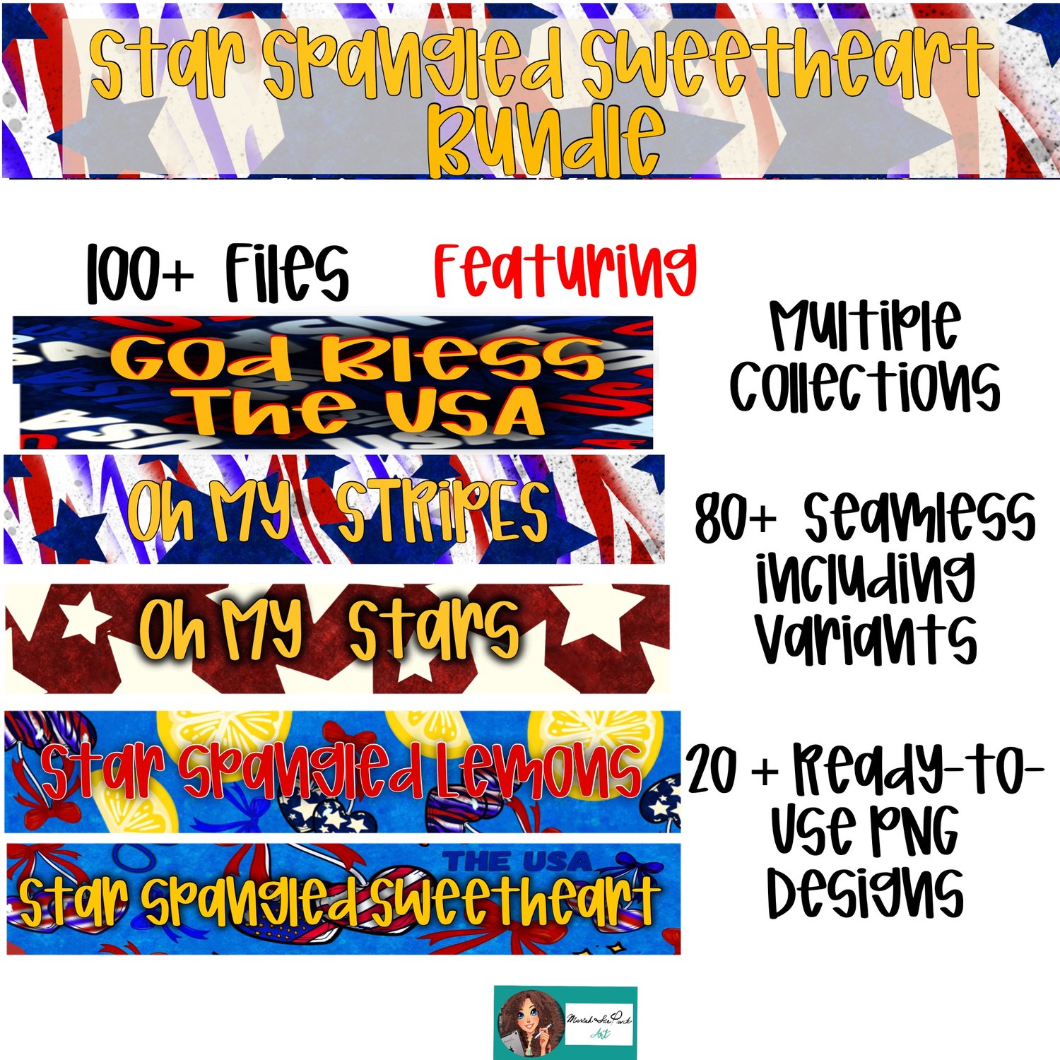 Star Spangled Sweetheart Bundle - Seamless & Complete PNGs