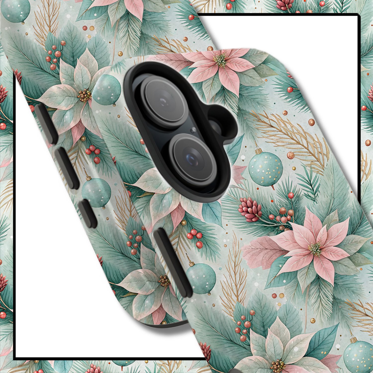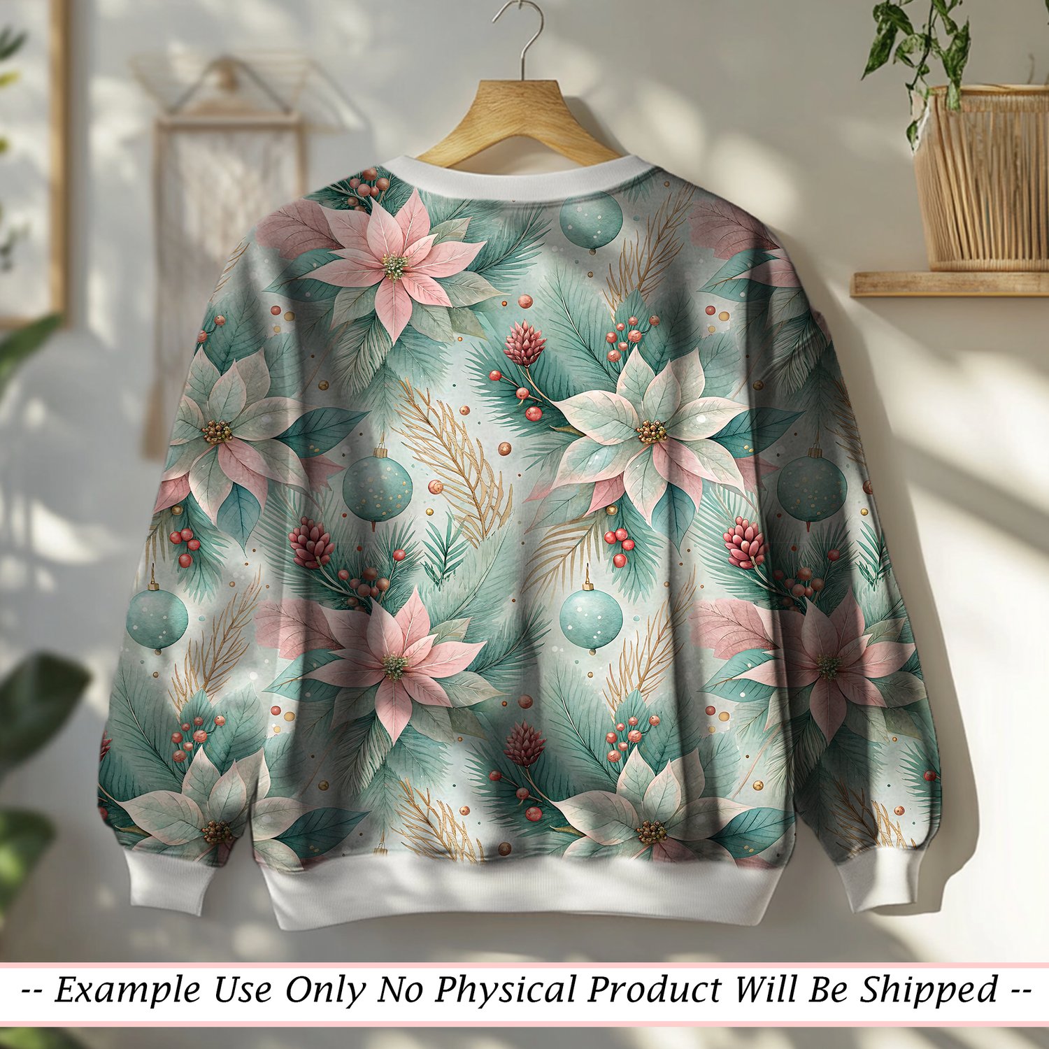 Mint Poinsettia Bloom Seamless Pattern