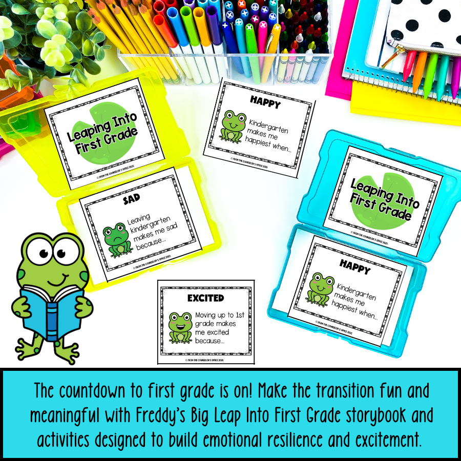 Help your kindergartners make a smooth and exciting leap into first grade with this engaging end-of-year activity. Recently updated with a revised version of Freddy’s Big Leap Into First Grade and three flexible presentation options—PowerPoint only, with narration, or with background music—this resource makes the transition fun, meaningful, and emotionally supportive for all learners.
