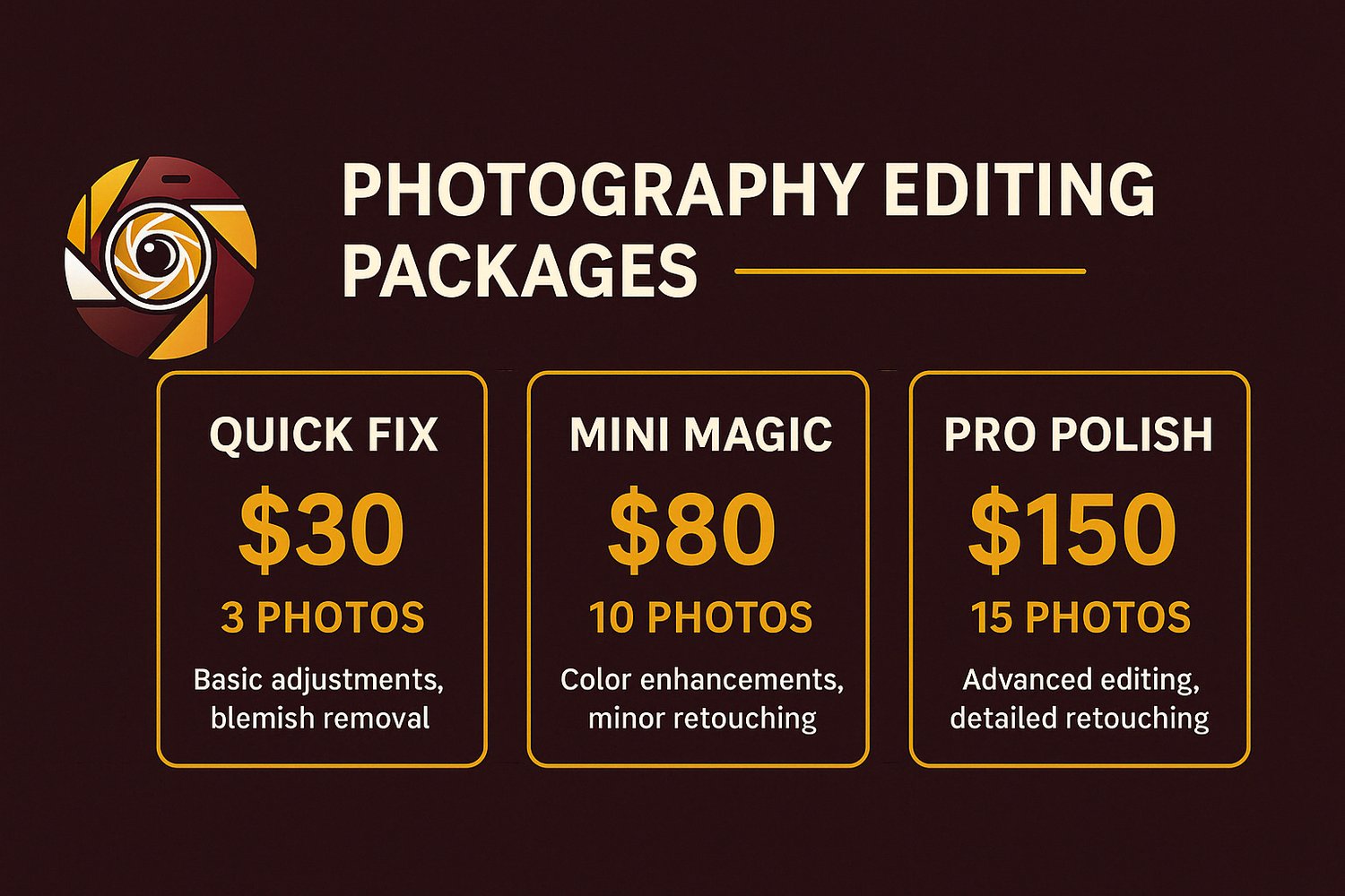 Need just a single photo refined or a small bundle edited? We’ve got you covered: you can purchase individual edits for $15 each, or 5 edits for $50. This à la carte option is perfect when you have a handful of images that need professional touch-ups without committing to a larger package. You’ll get the same fast service and quality consistency, one photo at a time.