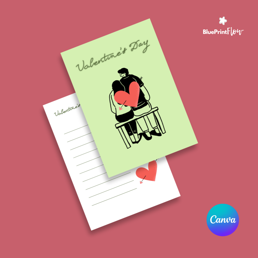 Featuring a charming hand-drawn couple and a heart pierced by Cupid’s arrow, this design radiates warmth and affection. Created in Canva, this fully editable and printable template is perfect for expressing your love on the 14th of February. Whether it’s a heartfelt letter or a creative gift idea, this card captures the essence of love and joy.