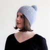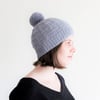 Sample used approximately 58g (116m {127yds}) for Adult Large hat, fitted version (grey), 94g (188m {206yds}) for Adult Large hat, slouchy version (ochre), and 18g (36m {39yds}) for each pom pom.