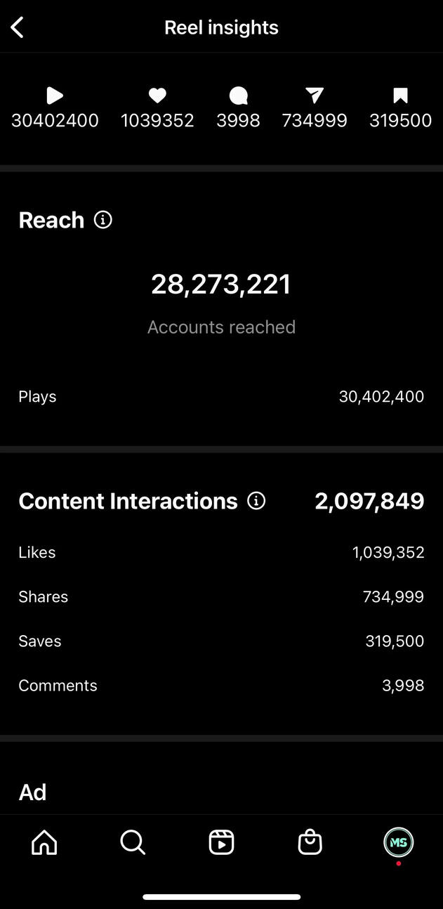 "Well my results surely speak for themselves I earned $32,000 last month after going viral and reaching 28 million accounts! Thank God for faceless content or i would never be able to experience making money on instagram."