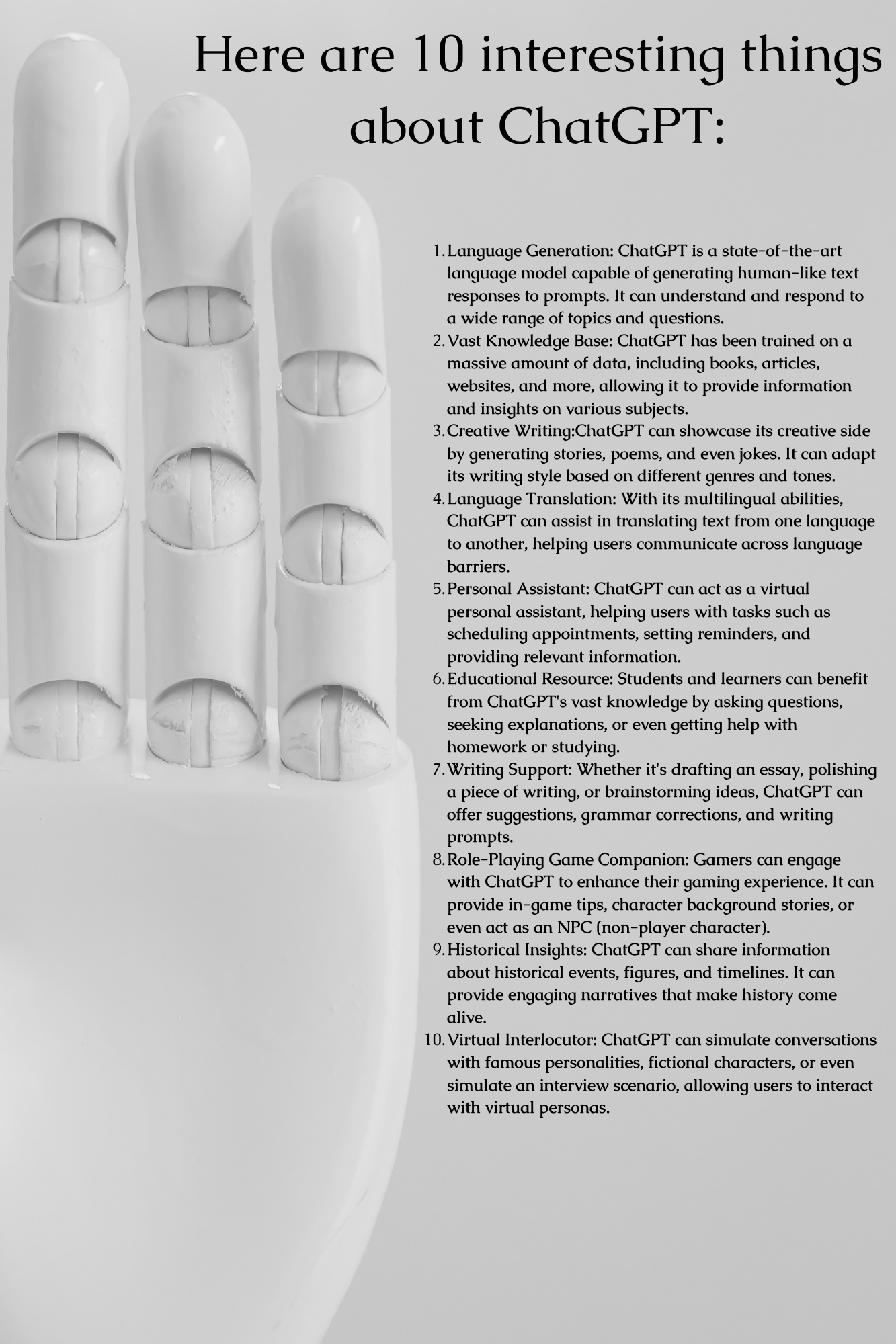 Unlock the captivating world of ChatGPT and delve into the realm of conversational AI. This book takes you on a journey through its origins, diverse applications, limitations, and the promising advancements reshaping human-AI interactions. Discover how ChatGPT empowers customer support, fuels creativity, and enhances education while navigating the challenges of biases, privacy, and responsible deployment. Explore the potential for human-AI collaboration, where humans and AI systems join forces to drive innovation and meaningful outcomes. With insights into the ethical considerations that shape its impact, this book unveils the transformative power of ChatGPT and invites you to envision a future shaped by intelligent conversations.