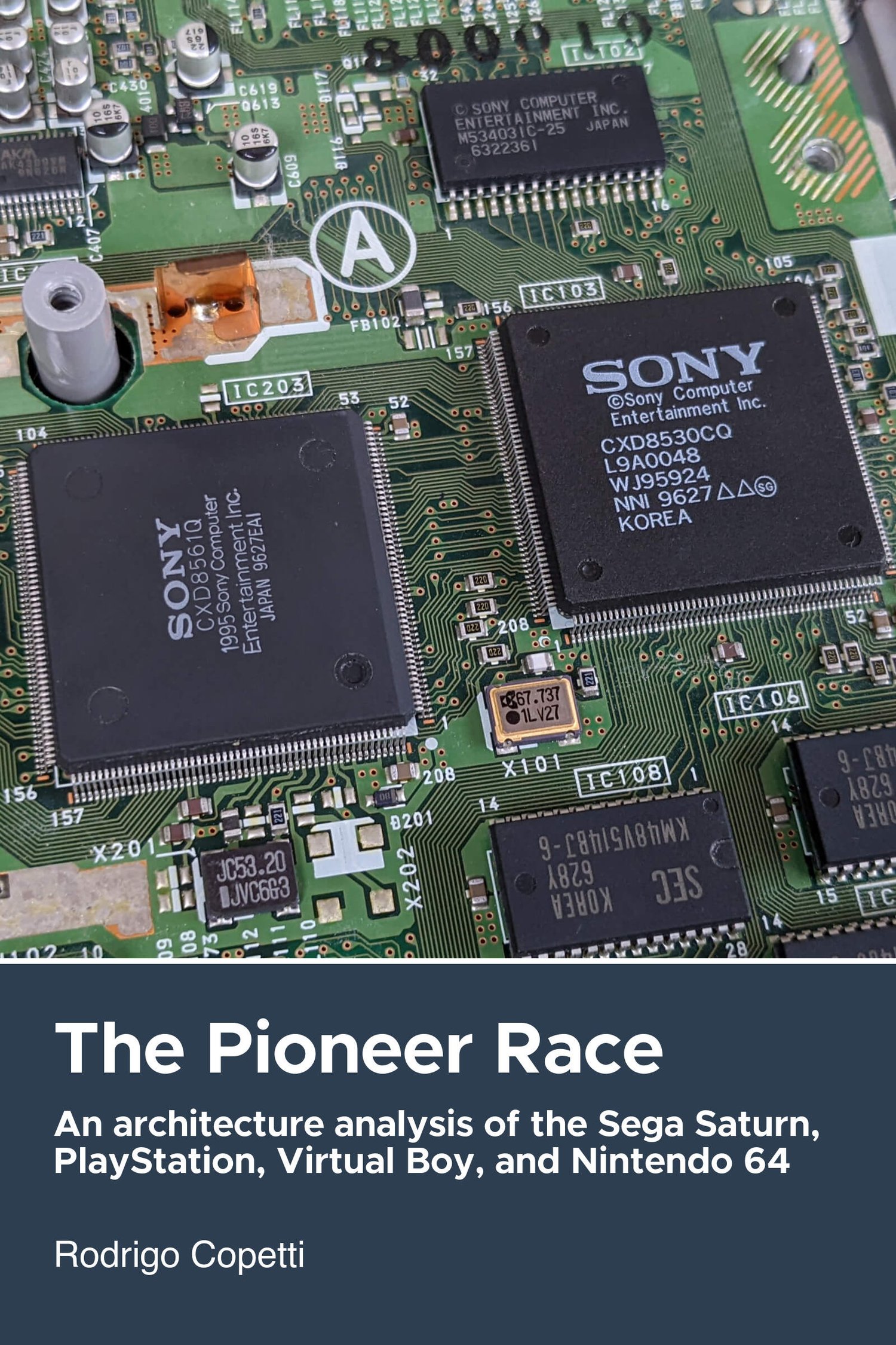 This volume includes the hardware and software analysis of the Sega Saturn (1994), PlayStation (1994), Virtual Boy (1995), and Nintendo 64 (1996)—a peculiar set I have dubbed 'The Pioneer Race'.