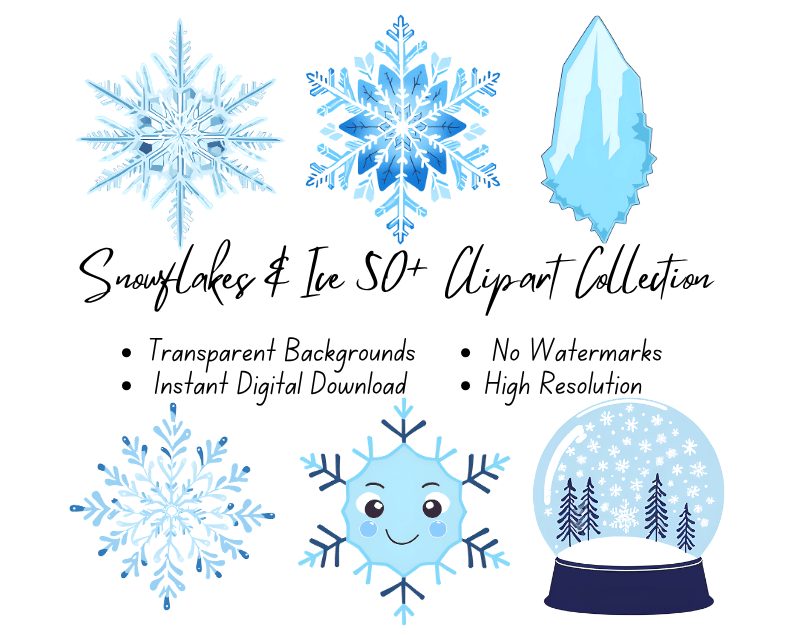 Snowflakes & Ice 50+ Clipart Collection | High-Resolution Digital Printables | Instant Download | No Watermark
