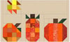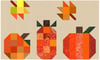 This is a PDF download file giving directions to sew all the pumpkin blocks together to make a patchwork table runner top/wallhanging (measures 18" x 30" when complete). No directions are given for backing, batting, quilting, and/or binding.