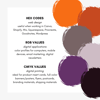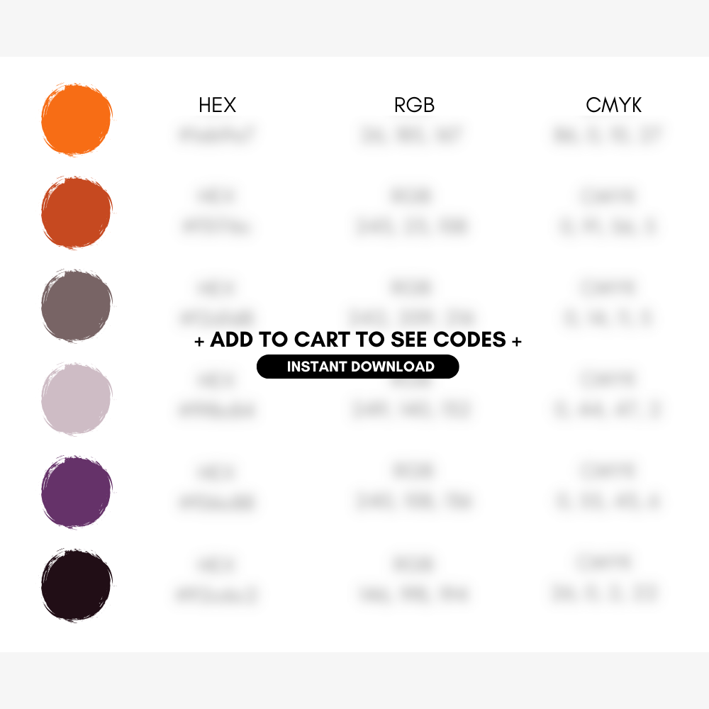Transform your business's visual presence with these rich, autumnal tones and capture the essence of fall. Whether you're revamping your brand colors or launching a new product line, this palette will help you stand out and make a memorable impression. Get ready to captivate your audience with a Halloween theme that's both spooky and sophisticated!