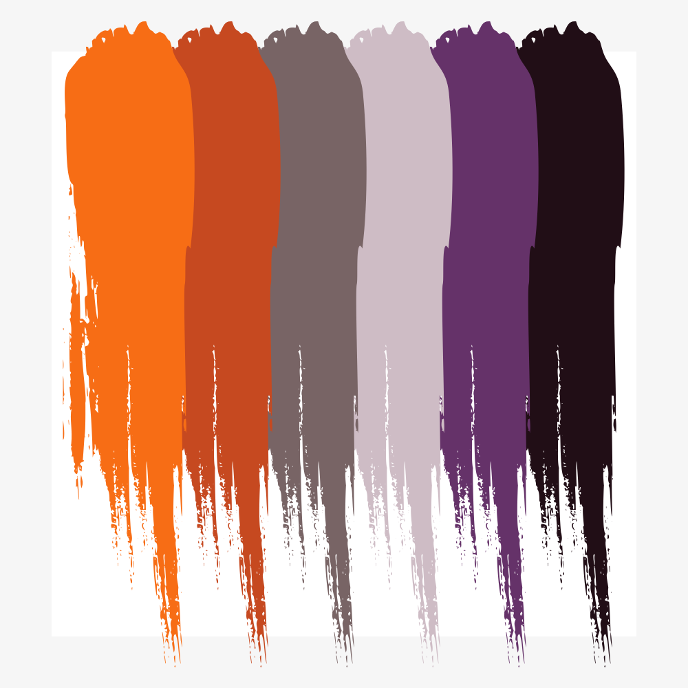 Unleash the spirit of autumn with our Trick or Treat Color Palette, perfect for small businesses looking to enhance their branding and marketing efforts this fall. This palette features an array of enchanting colors: dark orange, burnt orange, gray, dusty pale purple, royal purple, and black. Each shade is designed to evoke the essence of Halloween, creating a cohesive and captivating brand identity.