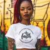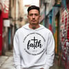 This powerful Faith Quote digital design features a clean, circular layout with a cross centerpiece and scripture reference Luke 1:37, making it perfect for modern Christian apparel and inspirational products.