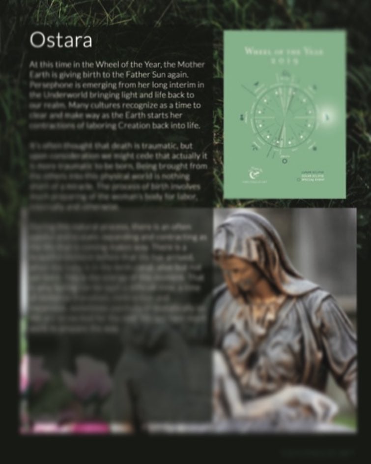 At this time in the Wheel of the Year, the Mother Earth is giving birth to the Father Sun again. Persephone is emerging from her long interim in the Underworld bringing light and life back to our realm. Many cultures recognize as a time to clear and make way, as the Earth starts her contractions, laboring Creation back into life.