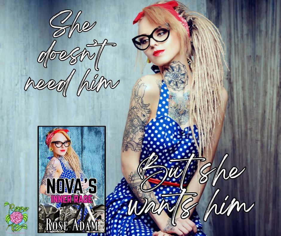 Spitfire. Independent. Stubborn. Intimidating. Nova has been called many names throughout her life, but baby and lover weren't in the lineup. As a mechanic and a female member of SOSMC, Nova fights tooth and nail for her position and respect. She knows she's not everyone's cup of tea, and while she brushes it off, Nova secretly desires a man to love her for her: quirky fashion, wicked mind and all. One night Nova combusts in the arms of her enemy and is left picking up the pieces.