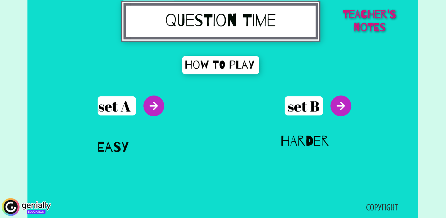 Question time! - REUSABLE - Genially interactive resources to teach English