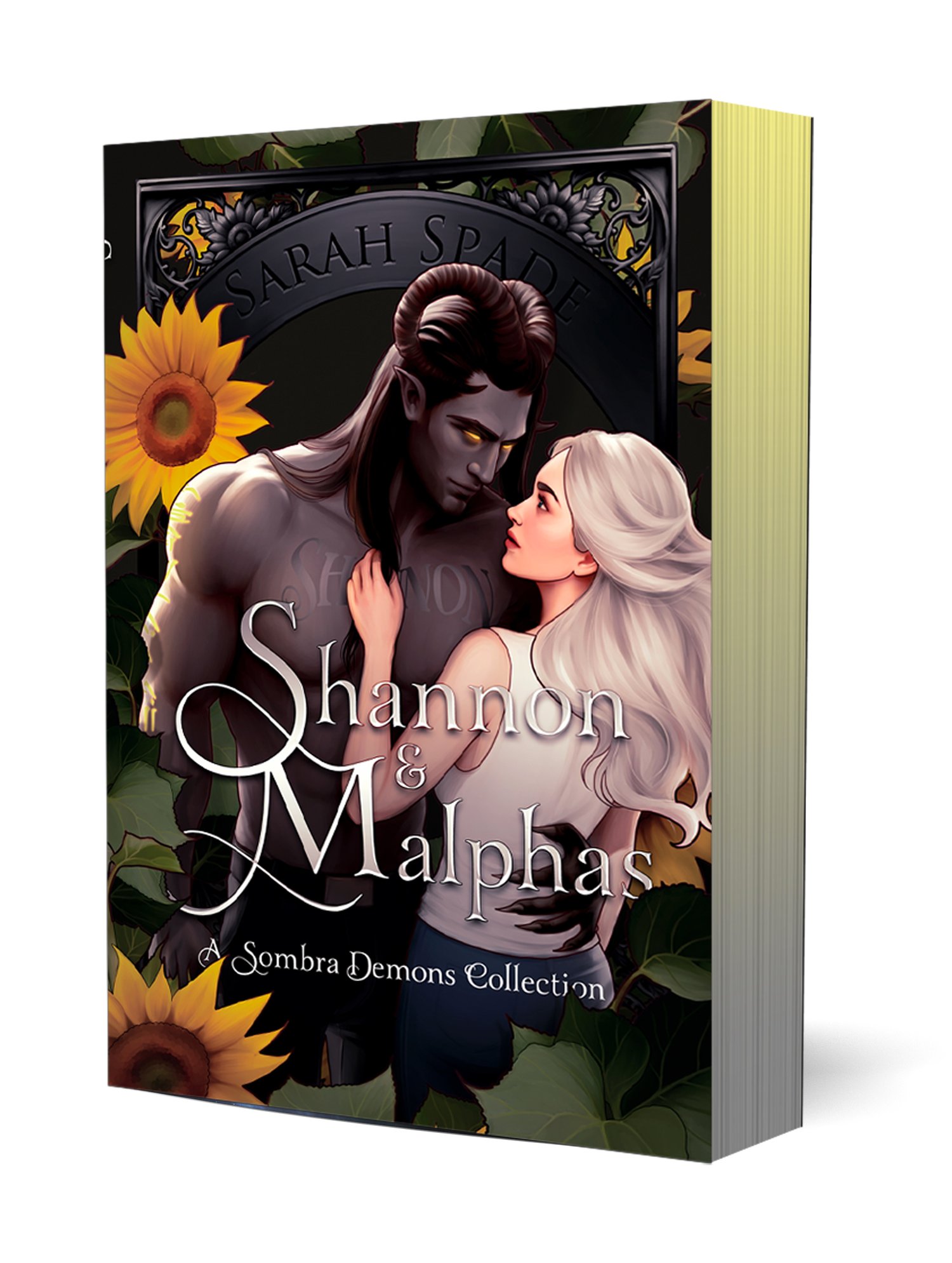 A signed copy of the Shannon and Malphas collector's edition in paperback by Sarah Spade. This features the three Shannon and Mal stories -- Mated to the Monster, Santa Claws, and Shannon in Sombra -- in one omnibus. It has digital gradient edges, a decorative border, color pages (and illustrations), and a duplex cover.