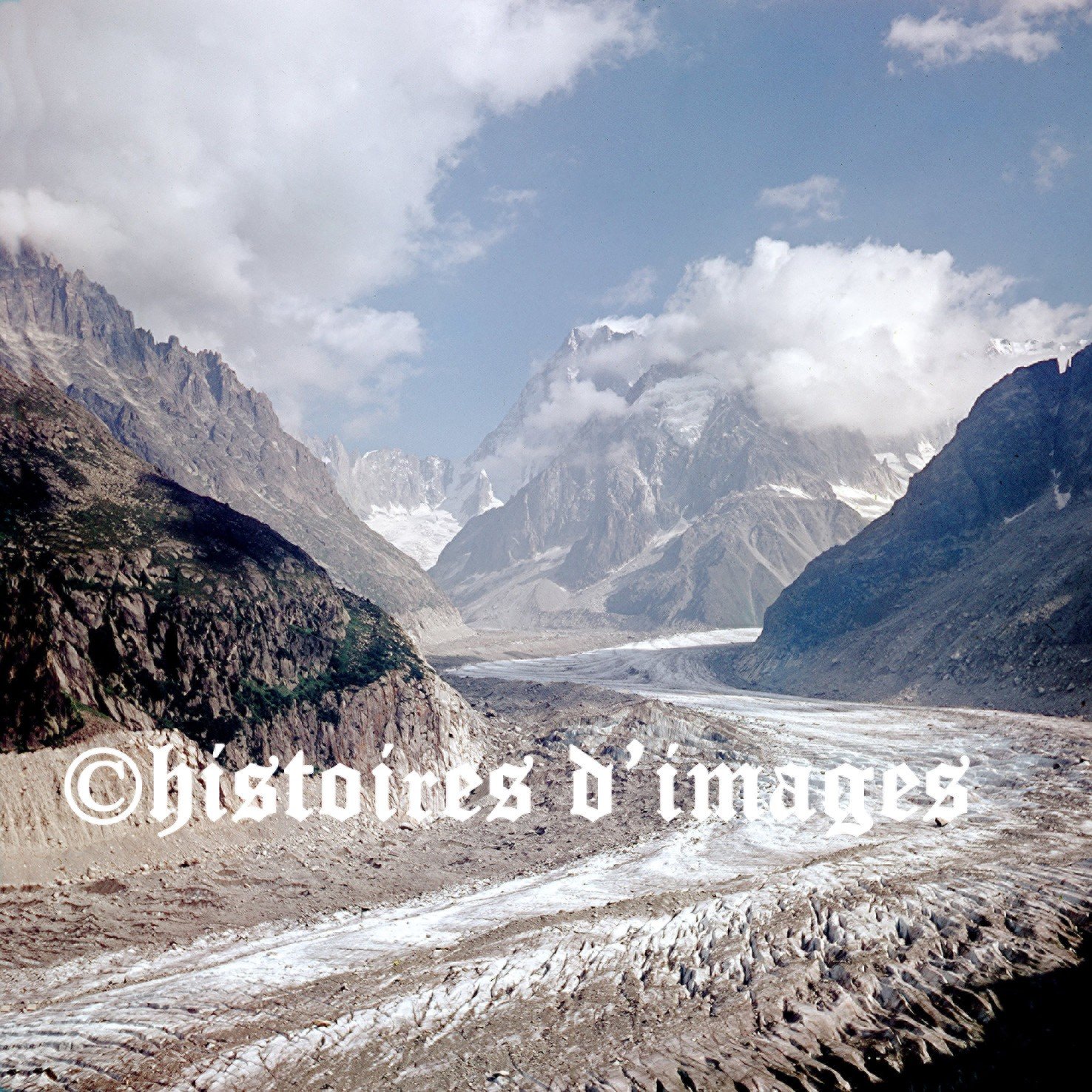 Step back in time with this stunning vintage photograph of the Mer de Glace, captured in 1959 at the heart of the Mont Blanc massif. A breathtaking view of one of Europe’s most iconic glaciers, preserved in all its natural beauty.