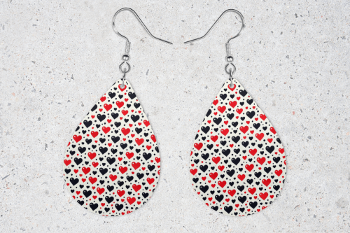 Add a stylish and romantic touch to your jewelry collection with these Small Red and Black Hearts Sublimation Earring Designs. Perfect for creating unique earrings for Valentine's Day!