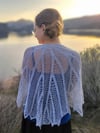 Sylvia is a more than half circle shawl worked from the center out. It features an art deco inspired design with a branching sunburst pattern in a mesh background that is surprisingly quick to make despite its large size.