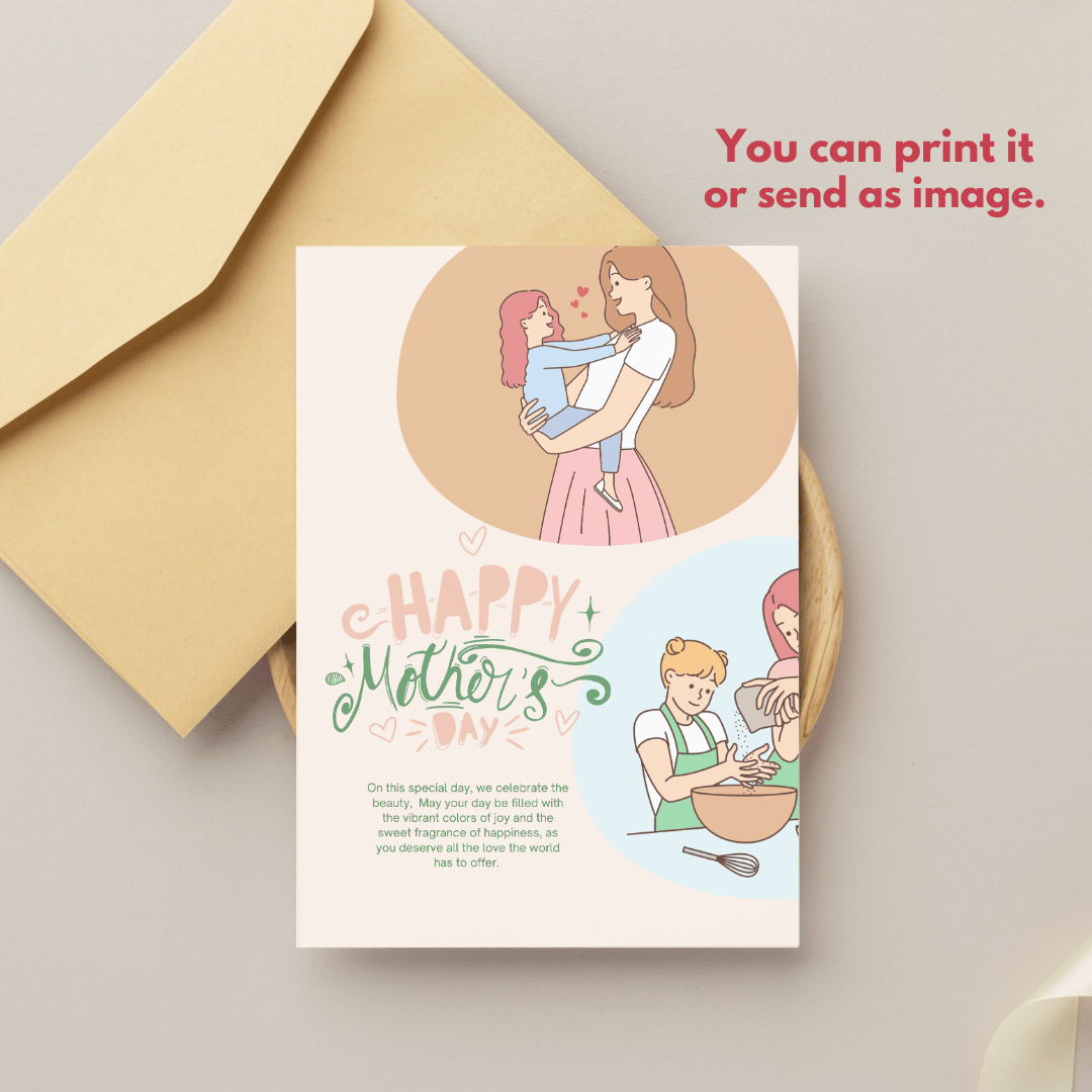 Featuring a charming floral-inspired illustration, this printable and downloadable Canva template is perfect for sons and families to gift to their mothers. Its simple yet elegant design expresses love and appreciation, making it a heartfelt keepsake.