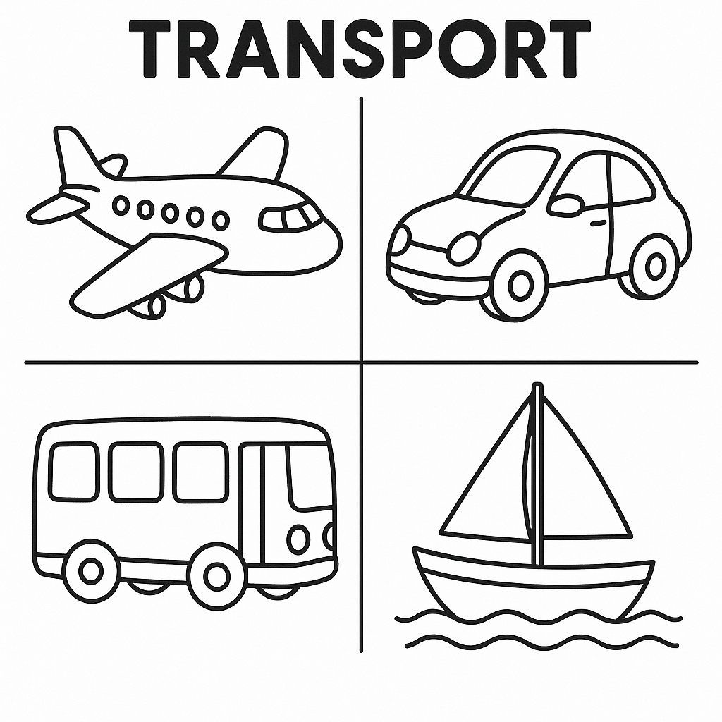 Get ready for a fun-filled journey with the Transport Coloring Book for Kids — the perfect digital activity book for little artists who love vehicles! This delightful collection features bold, easy-to-color illustrations of cars, buses, airplanes, boats, trains, and more. Each page is designed to spark creativity, improve motor skills, and keep kids entertained for hours.