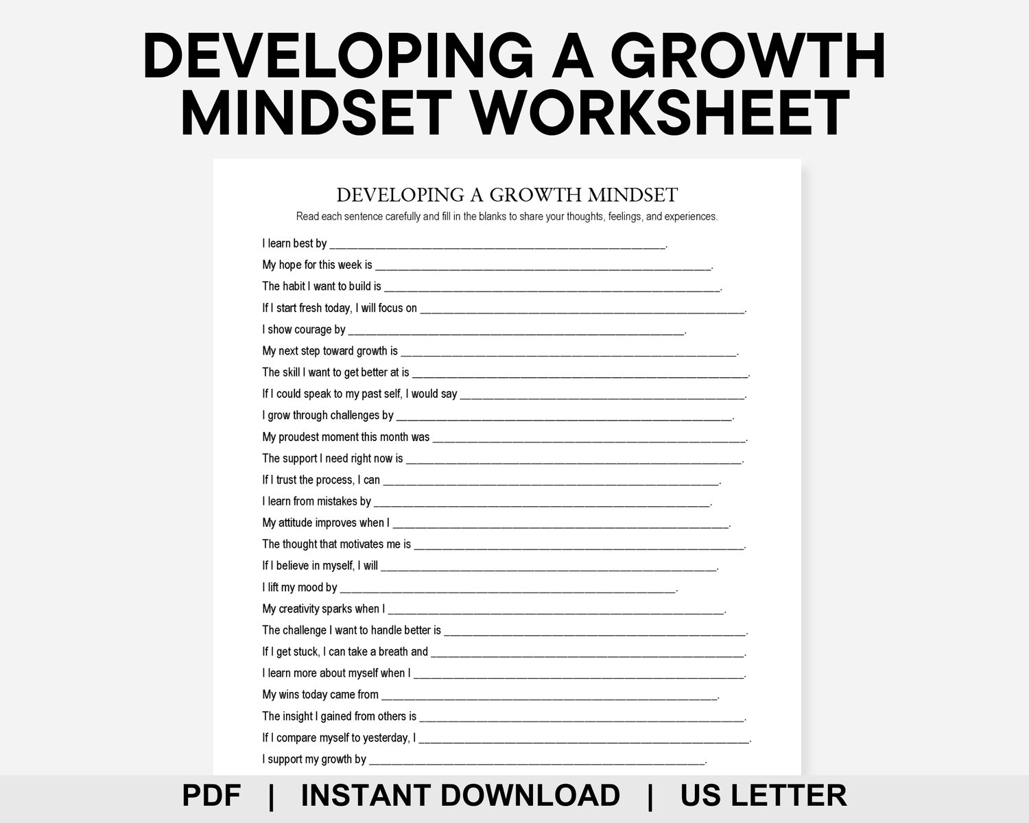 Developing a Growth Mindset Worksheet, Fixed Mindset, Personal Development, Resilience Building, Goal Setting, Self Improvement, Self Esteem