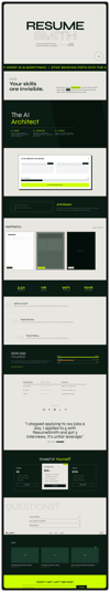 ResumeSmith is a premium, avant-garde website template designed for anyone selling resume tools, AI-based job-matching products, or career-tech SaaS. Featuring bold typography, futuristic cursor interactions, glitch effects, ATS-checker demos, template gallery sliders, pricing tables, and stats — this template forces visitors to believe your career tool is superior.