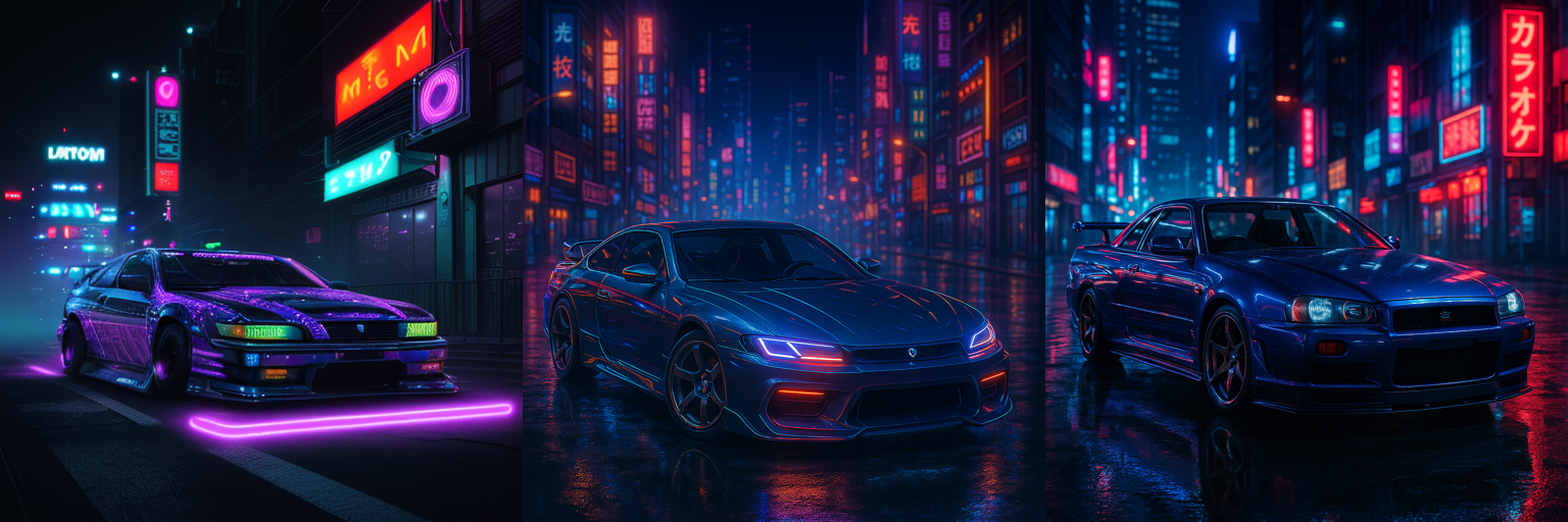 A high-res digital art pack featuring 3 neon-lit JDM scenes built for speed, style, and late-night vibes