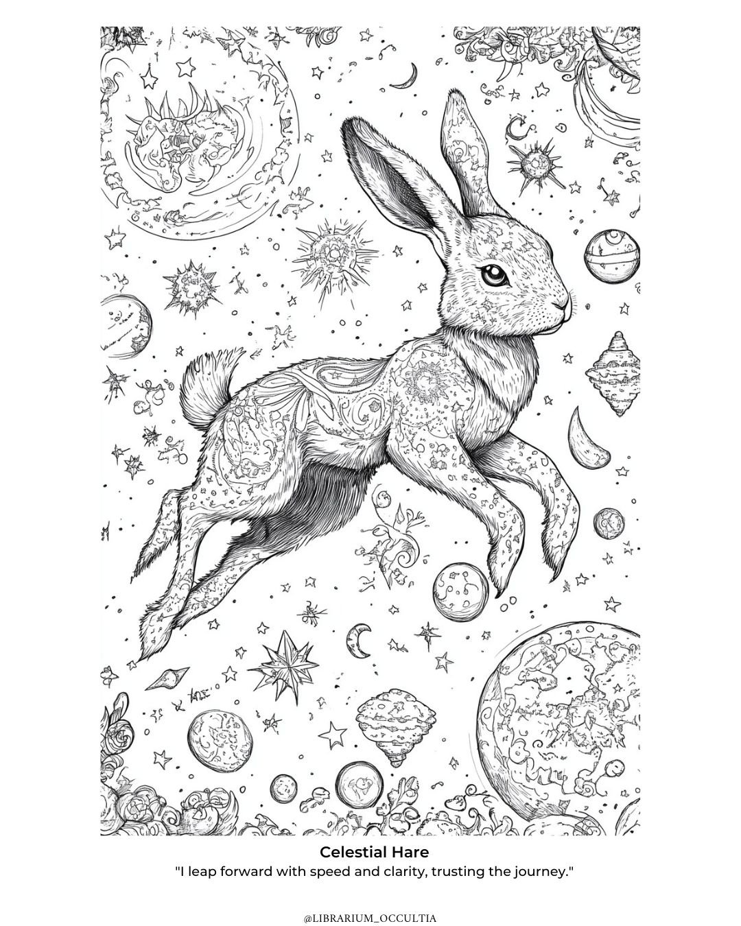 Unlock instant access to all 25 intricate celestial animal designs from Librarium Occultia in this high quality printable PDF coloring book. Each illustration features detailed line art crafted for creative relaxation, focus, and artistic enjoyment. Perfect for colored pencils, gel pens, and digital coloring apps, this PDF lets you print your favorite pages as many times as you wish for personal use.