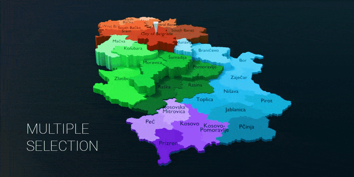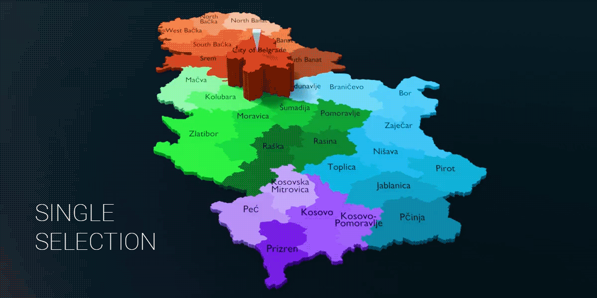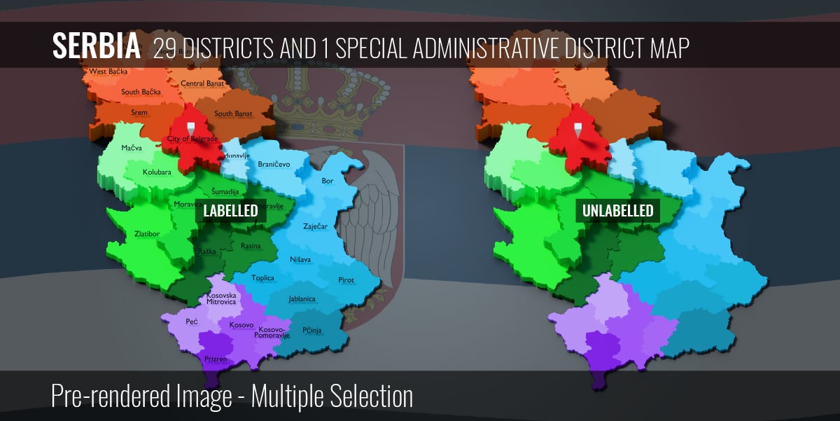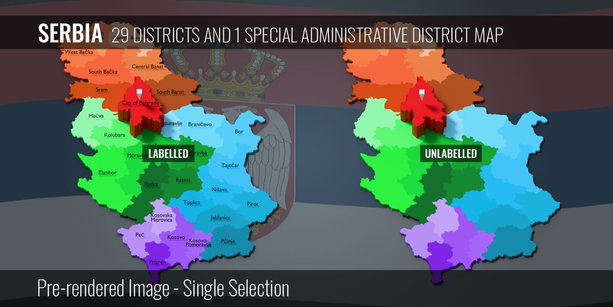 Serbia - 29 Districts and 1 Special Administrative District Map (3D + Pre-rendered Images)