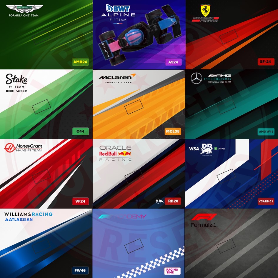 Le modèle 4 reprend l’identité visuelle des 12 écuries de la saison 2024, dans un design moderne et coloré qui met en valeur chaque voiture. Avec son fond dynamique et ses repères discrets, tu peux facilement placer tes modèles au bon endroit et obtenir un rendu propre et aligné.