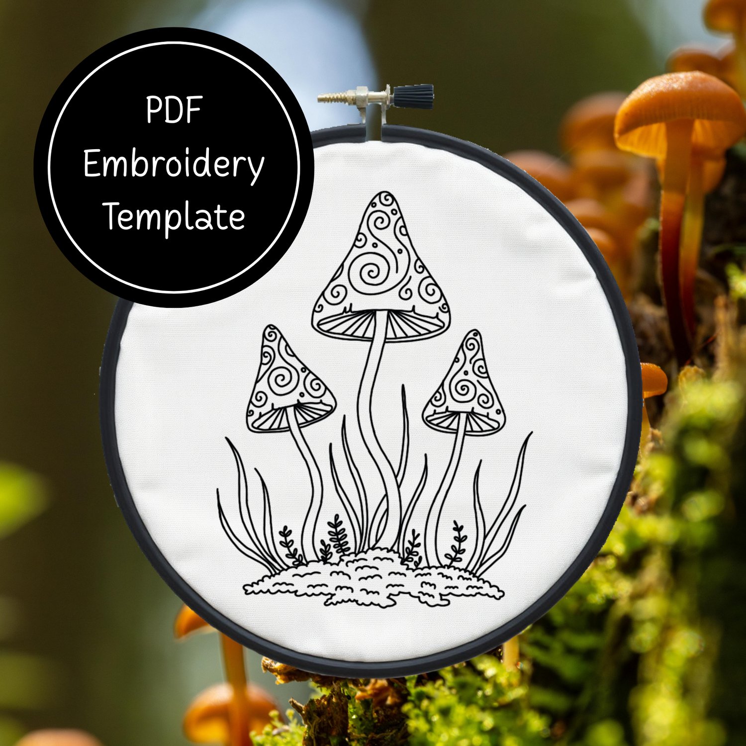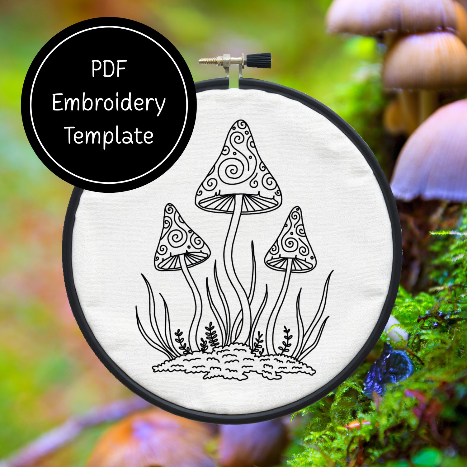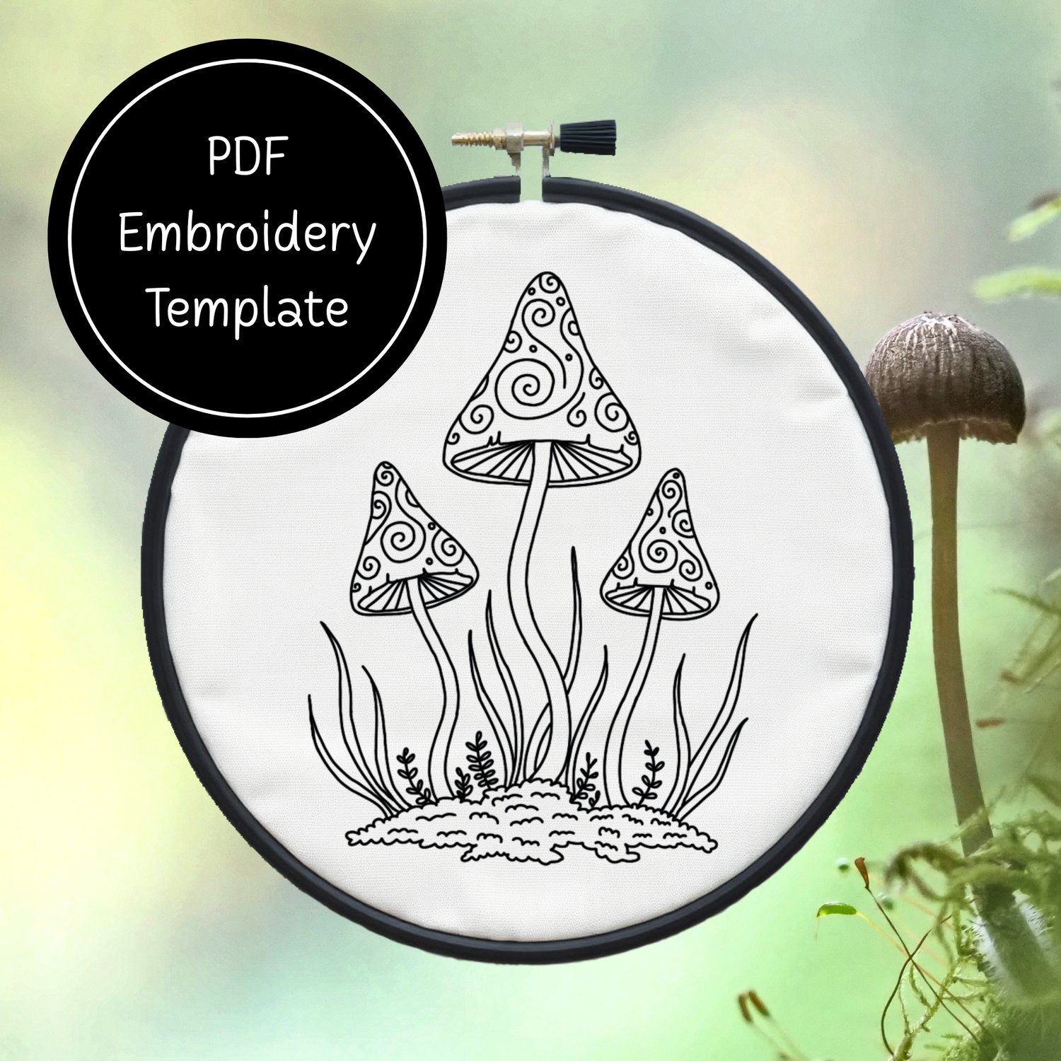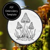 Tri Mushrooms - Hand Embroidery Template - Instant Download + Bonus Matching Stationery