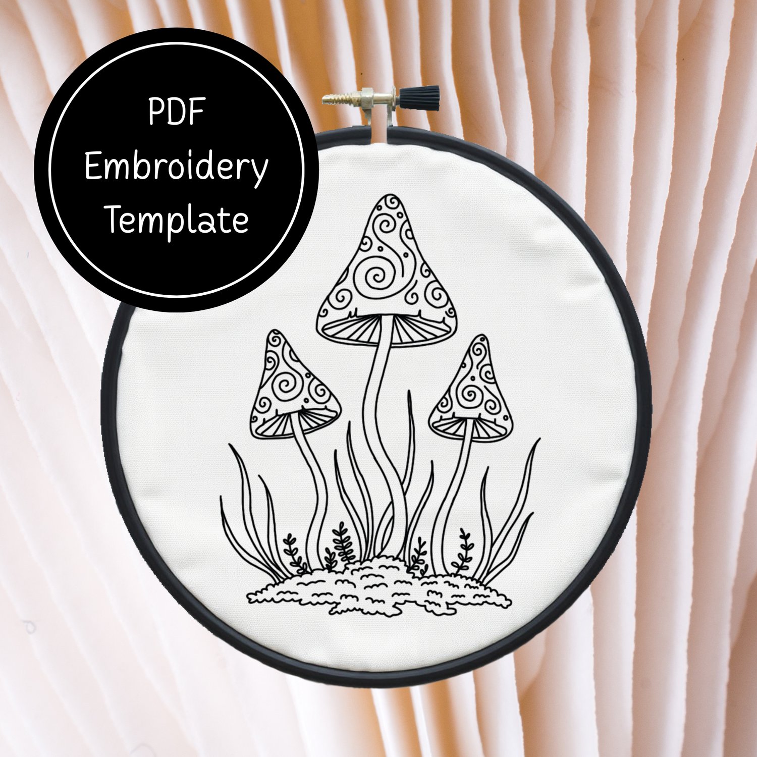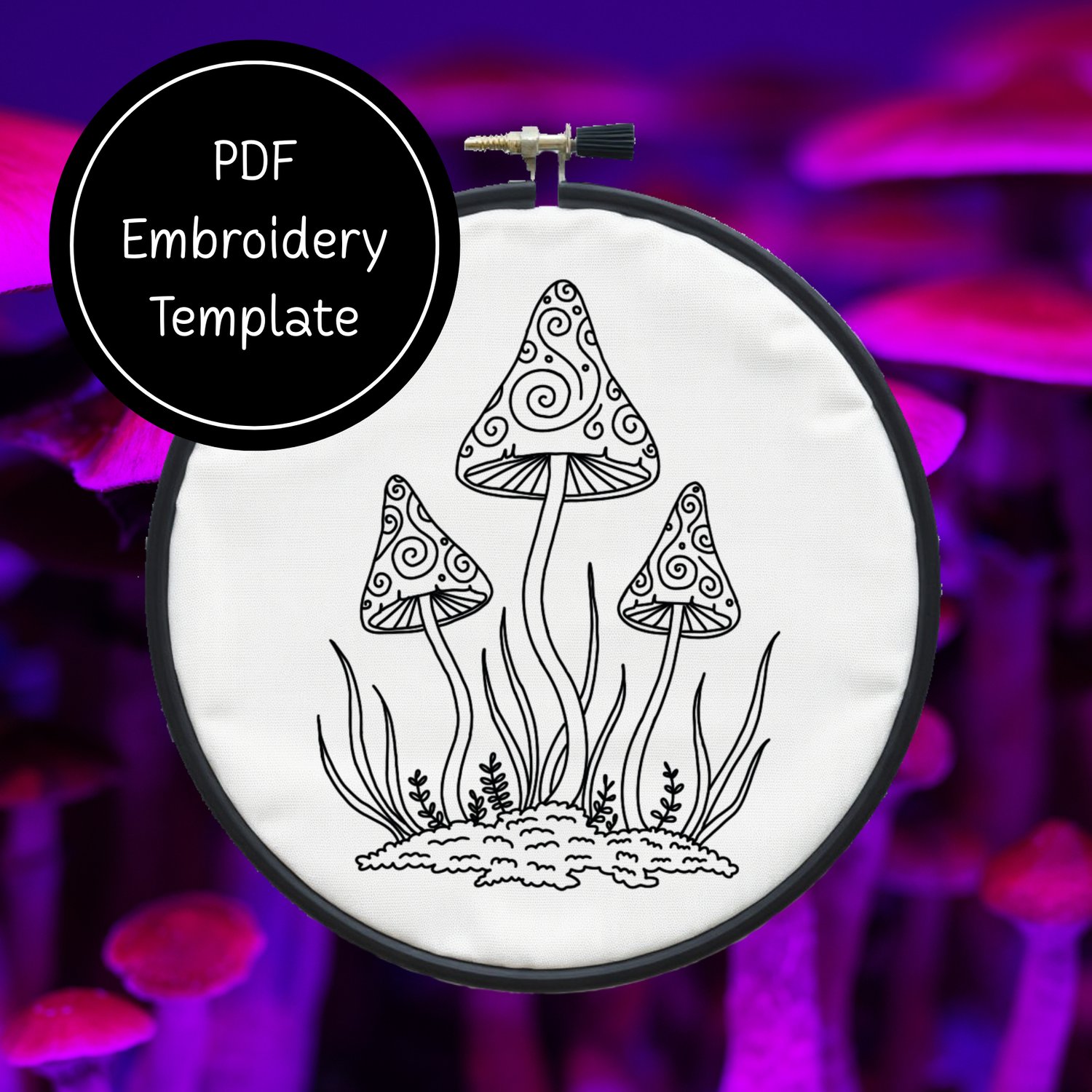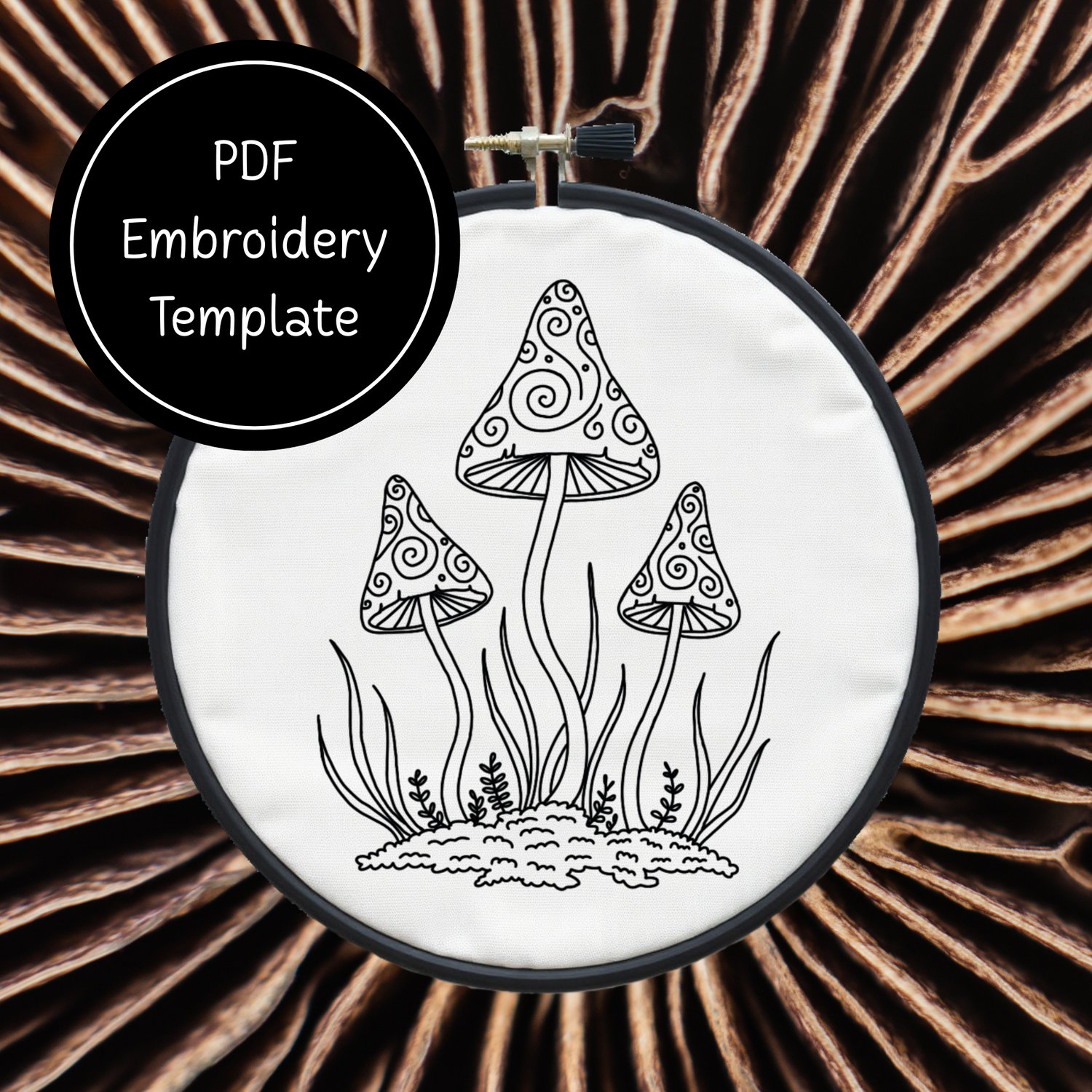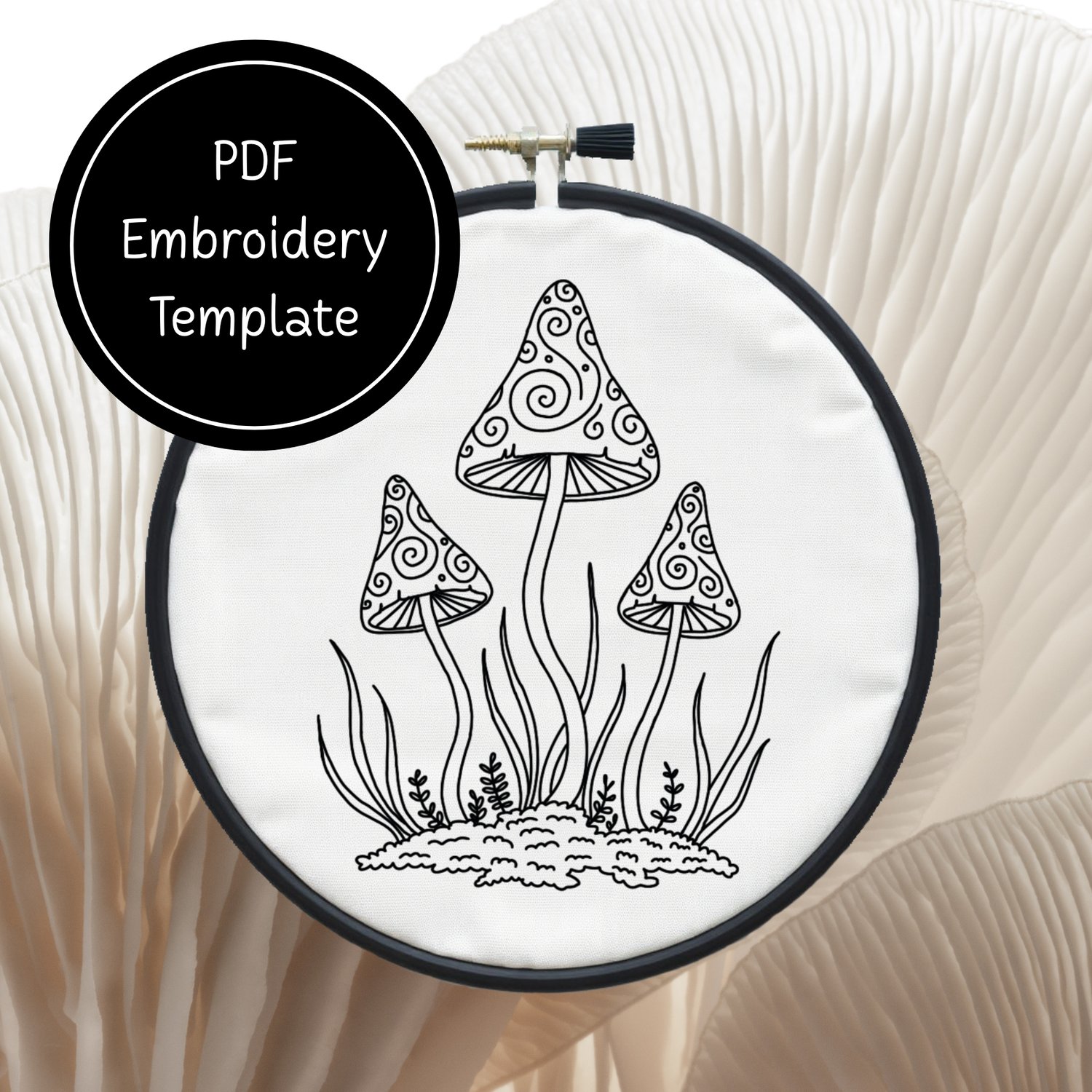 Tri Mushrooms - Hand Embroidery Template - Instant Download + Bonus Matching Stationery