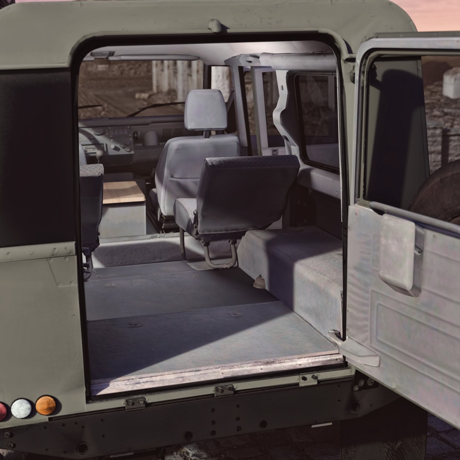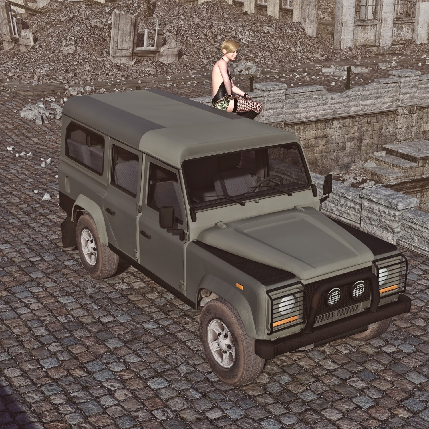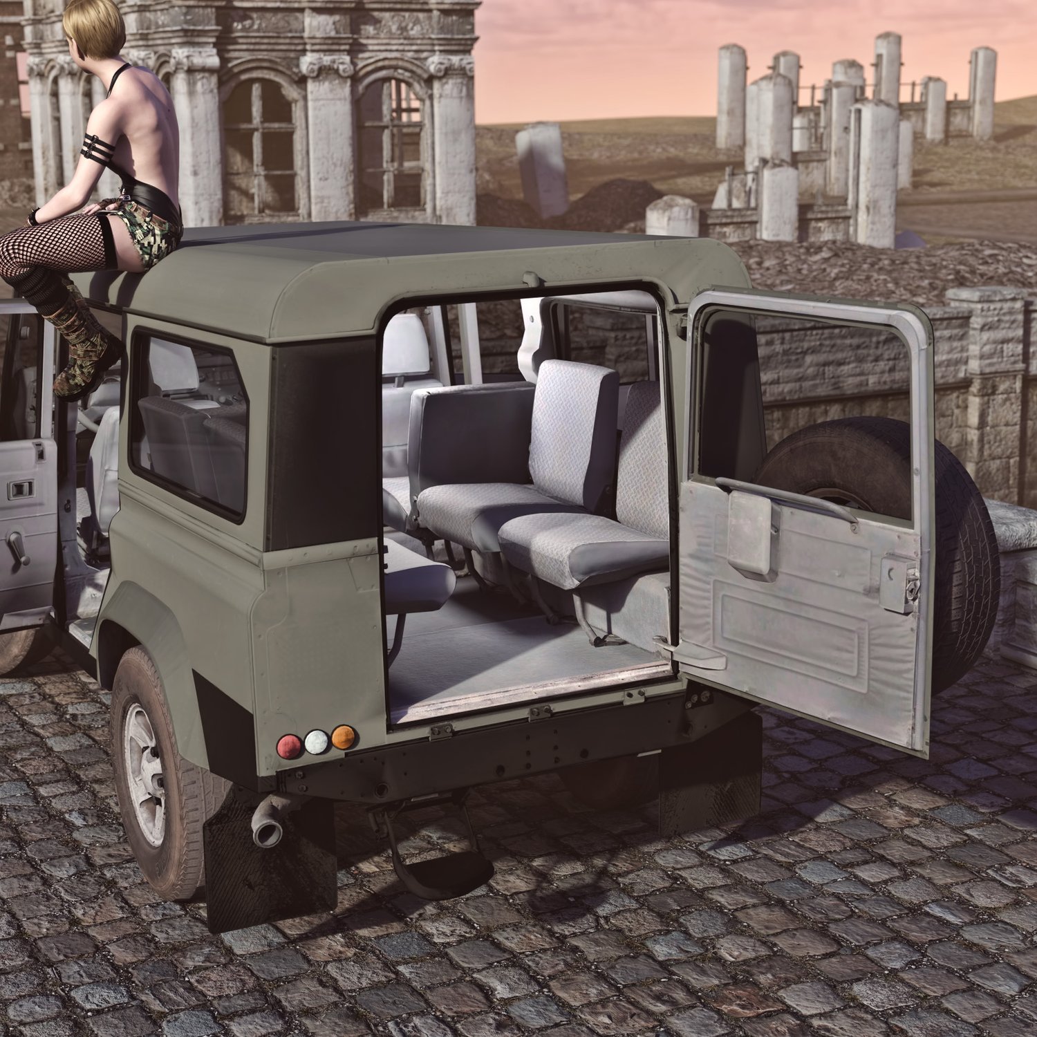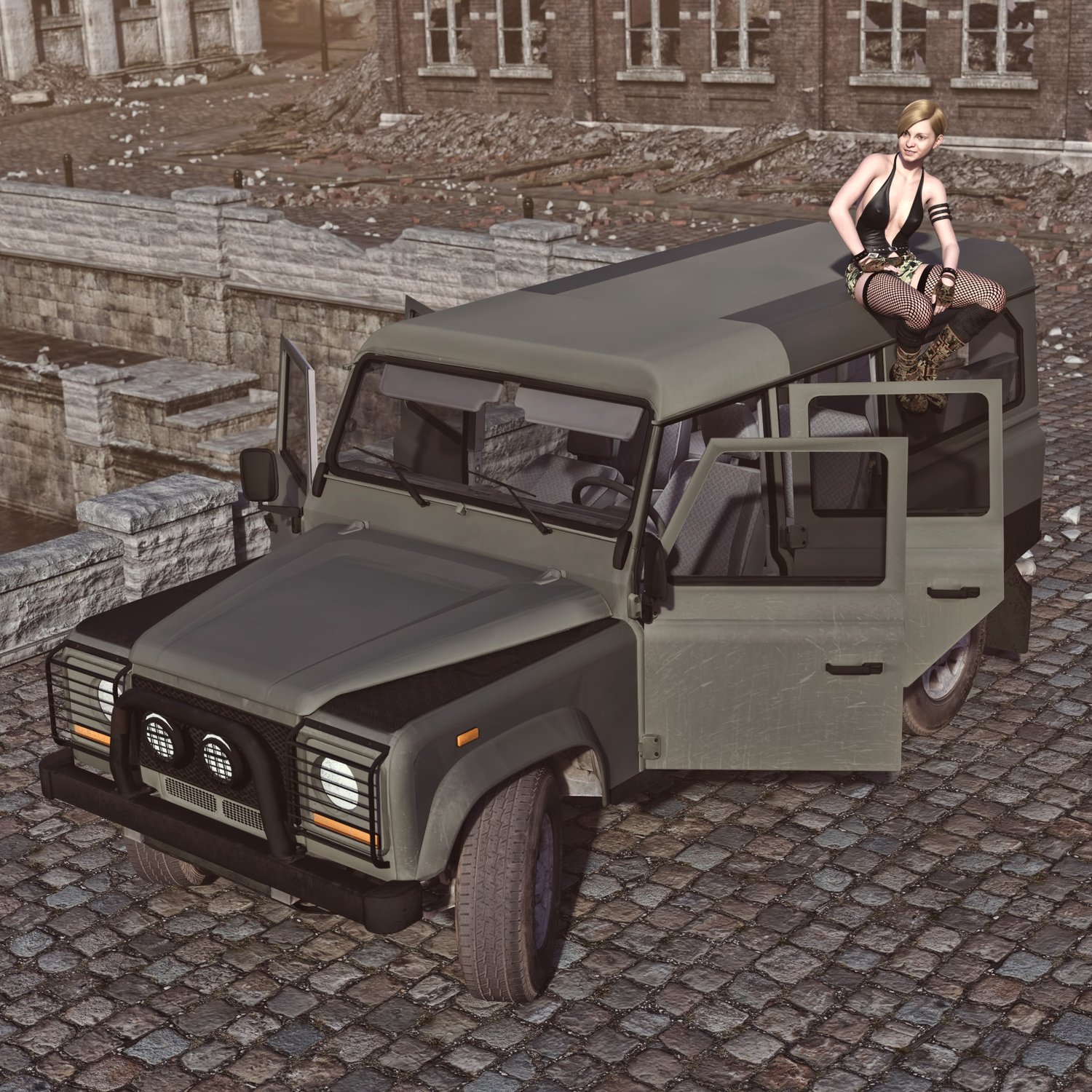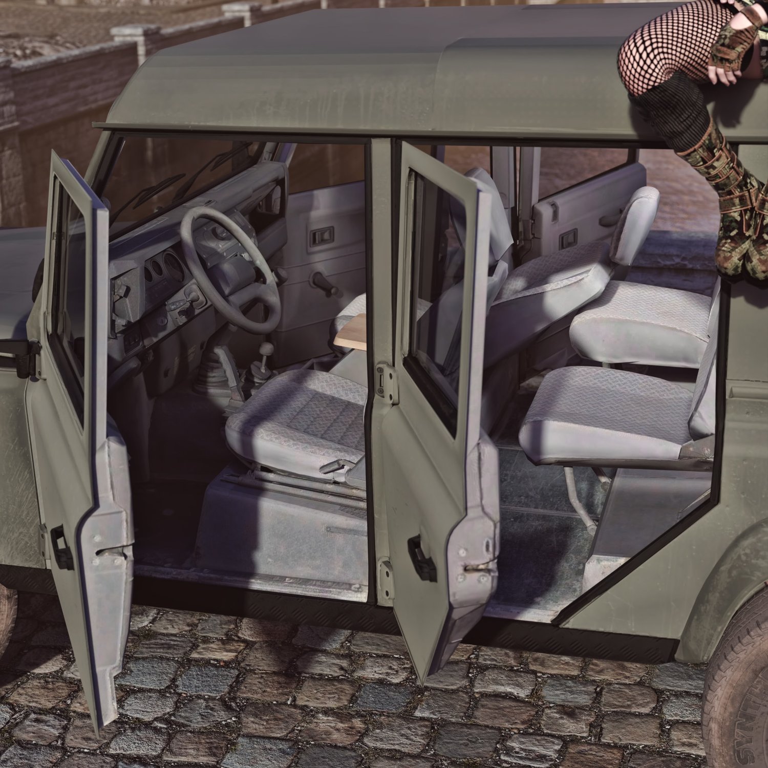 A very good and famous SUV vehicle designed for an efficient transportation on a difficult and dangerous terrain. Used extensively in civilian service as well as in the military, fast and nimble. This specific car has a lot of space in the rear, which includes 4 seats for friends or troop. The seats can be hidden in case you want to put something else there. Also the backs of the front seats rigged for various porpoises. Good for transportation and for fast advance and landing. Rear door is also rigged. The prop is converted and rigged for DAZ.